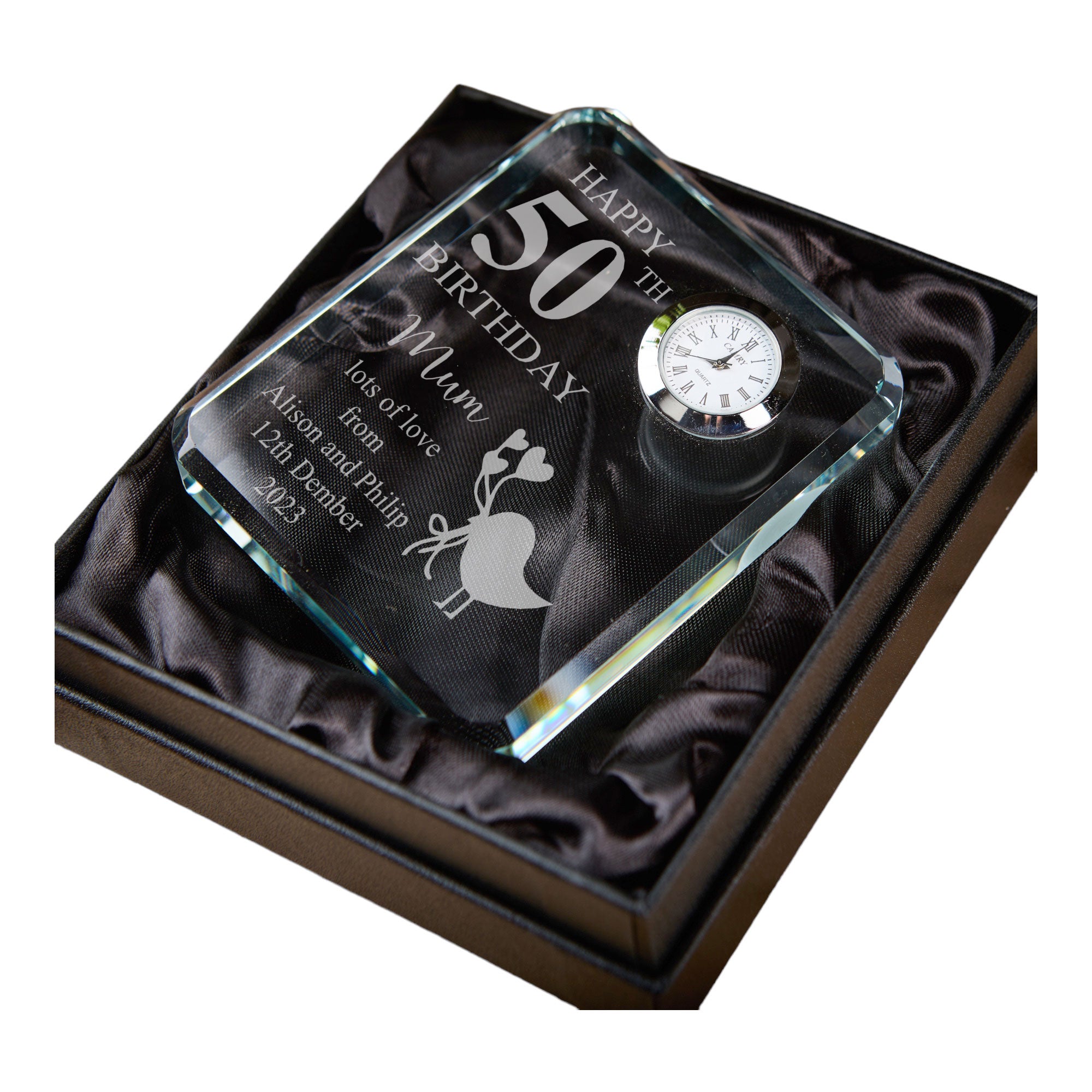 Crystal cut glass which is engraved with a sentiment and personalisation of an age, name and short sentiment
