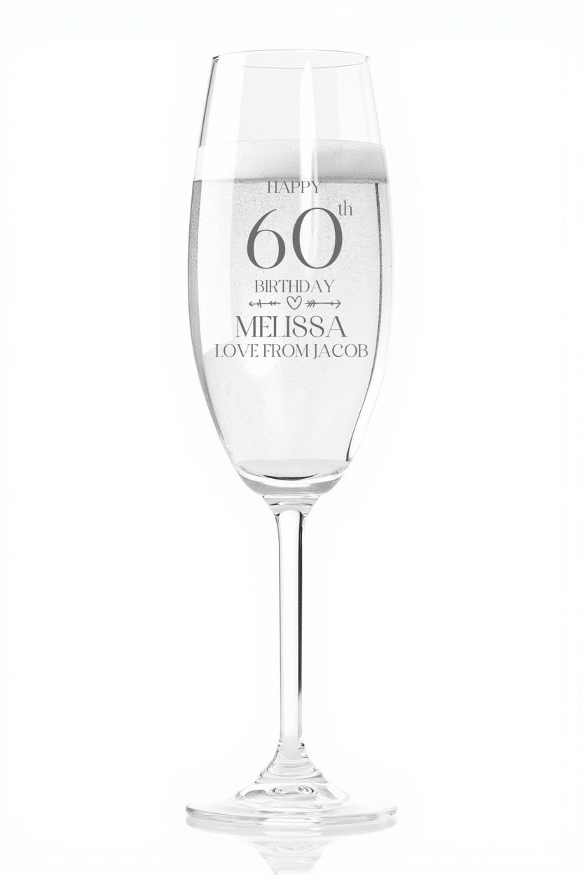 Celebrate any milestone with this personalised birthday champagne flute or prosecco glass, suitable for ages 18 through 80. Expertly crafted and customized to mark significant birthdays, it arrives in a simple presentation box, making it an elegant gift choice. The glass measures 23 cm in height and 6 cm in both width and depth, ensuring a comfortable grip and a stylish experience. Comes in a presentation box. Perfect for commemorating special occasions with a personalized touch.