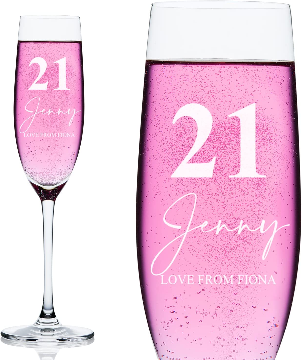 The glass comes the age shown along with a name and short sentiment of your choice. Marked with our laser engraving system, your personalised message will be permanently inscribed on the glass, making a lasting, sentimental gift that will be treasured forever. This glass holds 7.5oz/220ml, and measures to 230mm x 50mm. Your glass will arrive gift boxed, ready to give straight to the recipient. We recommend washing your glass before its first use.