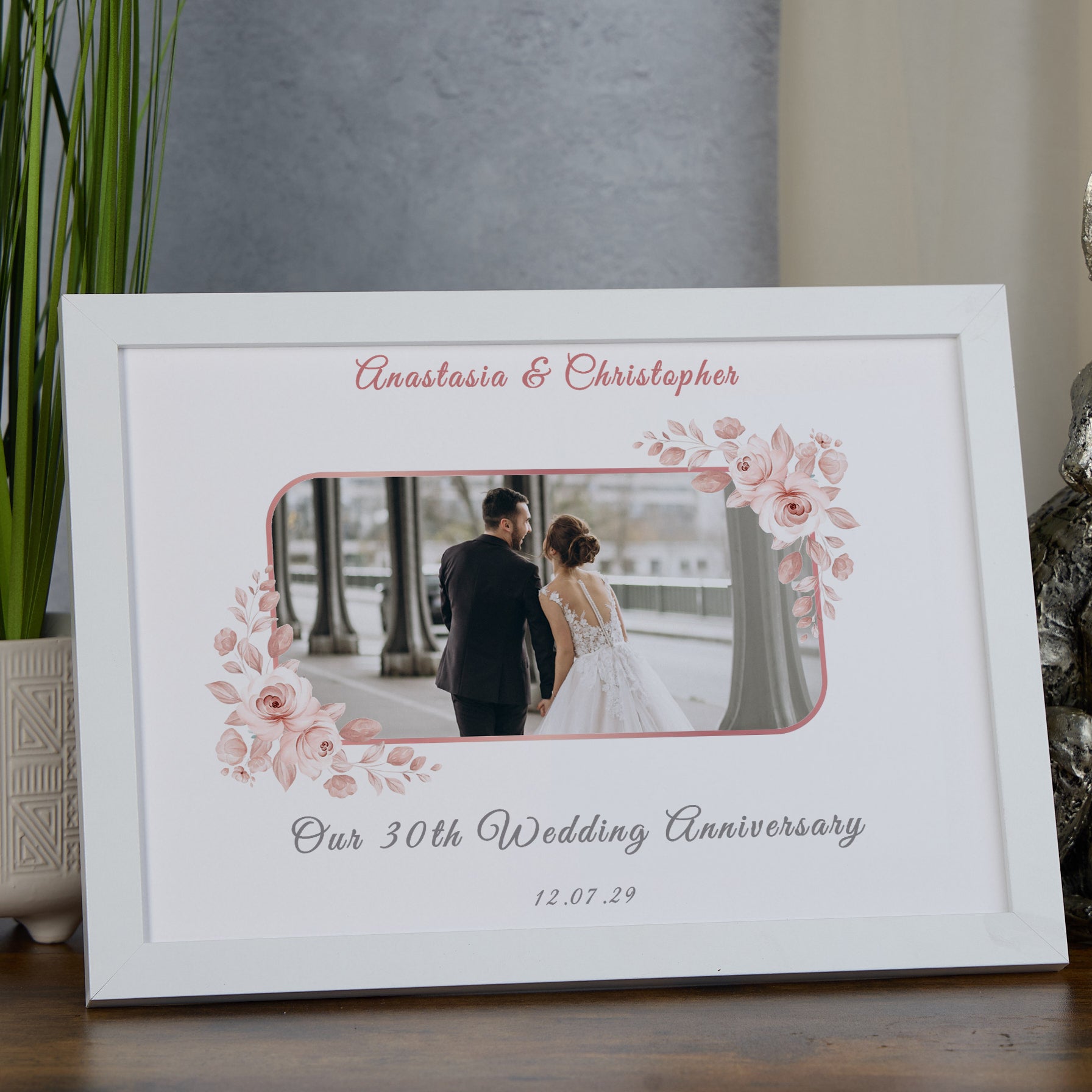 Mark the milestone of your 30th wedding anniversary with this personalised photo frame, designed to beautifully showcase your favourite memory from the special day. Crafted as a thoughtful keepsake, it combines elegance and sentiment, making it an ideal gift to celebrate your enduring love and the journey ahead. Its customisation adds a unique touch, ensuring it becomes a treasured memento for years to come.
