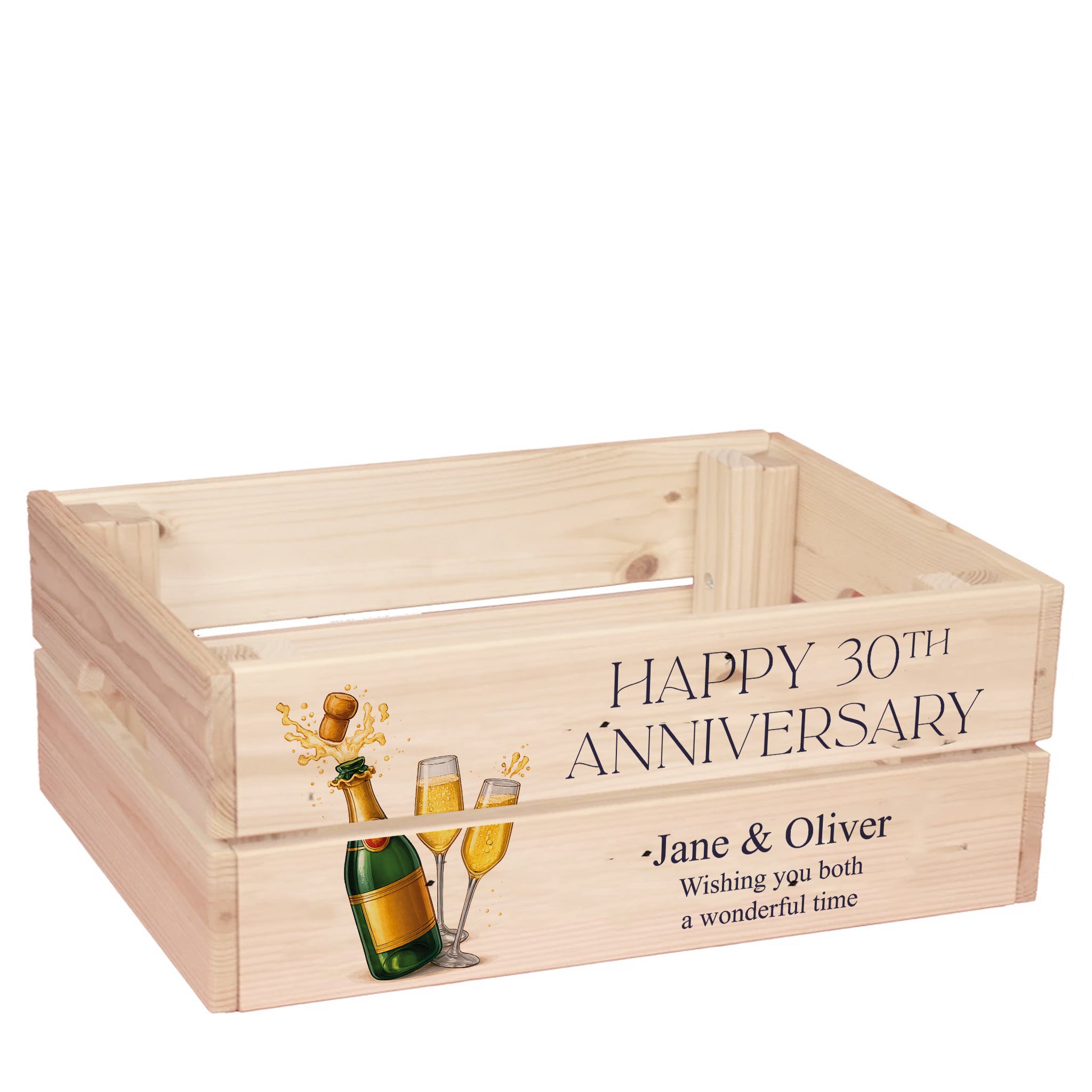 A personalised crate box allows you to create a unique and memorable gift for the one celebrating any special day. With this colourful flower themed crate, you can assemble a hamper as a beautiful and functional decor piece to celebrate their special day.