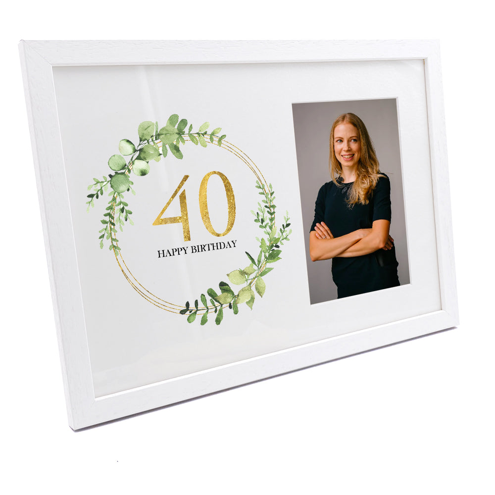 40th Birthday Personalised Photo Frame with Gold Wreath Design for Her. A lovely wooden frame to display...