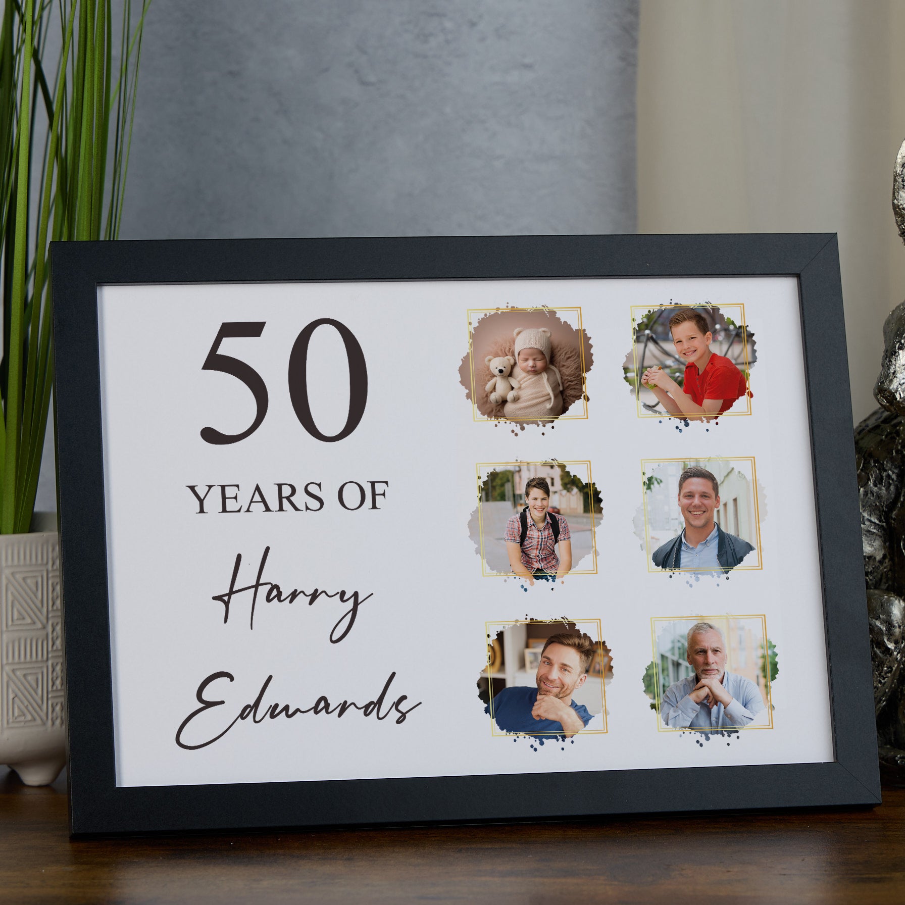 Personalised Elegant Birthday Collage Frame Custom Age Framed Print Birthday Gift 10th,13th,16th,21st,30th,40th,50th,60th,70th Birthday Memories Display
