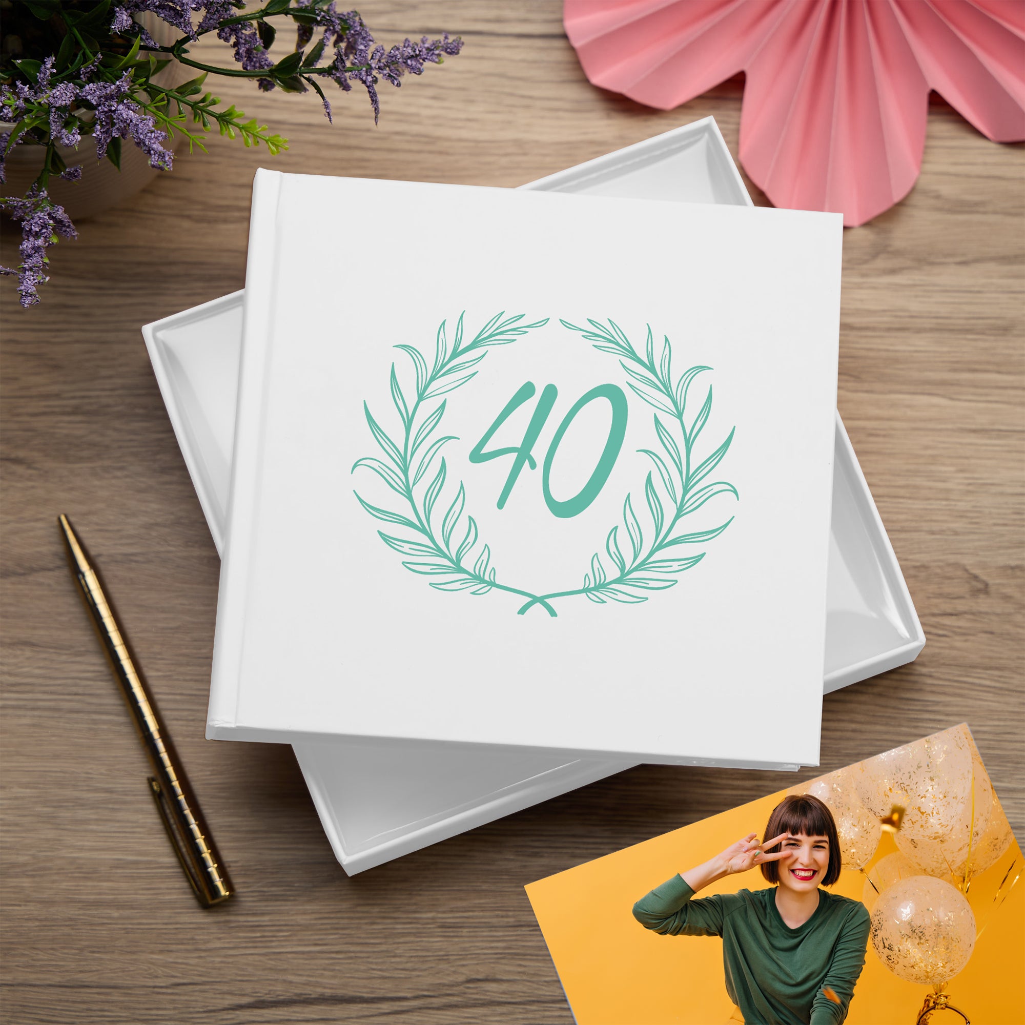 40th Birthday White Photo Album Gift For Her Or Him With Laurel Wreath