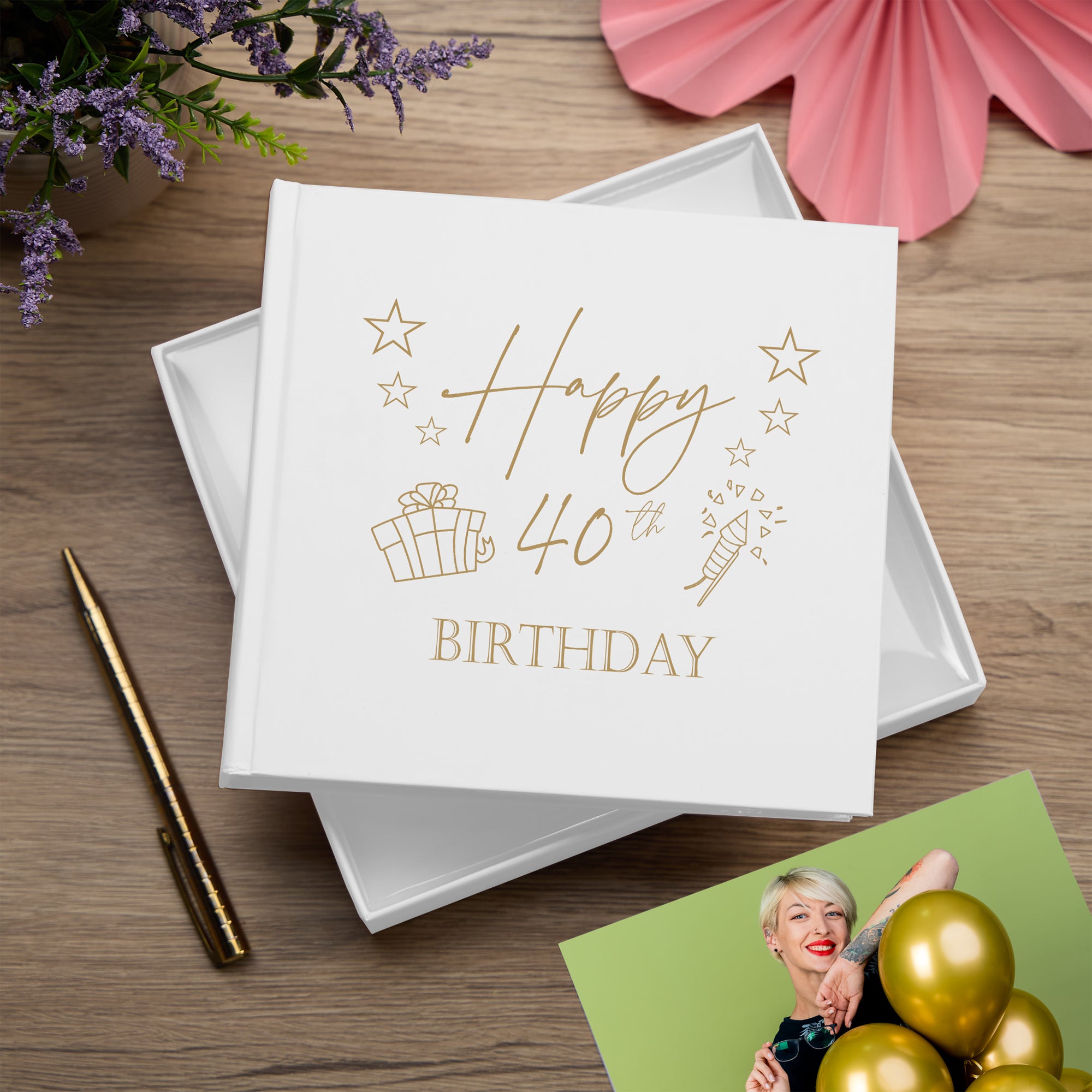 40th Birthday White Photo Album Gift For Her Or Him With Present Design