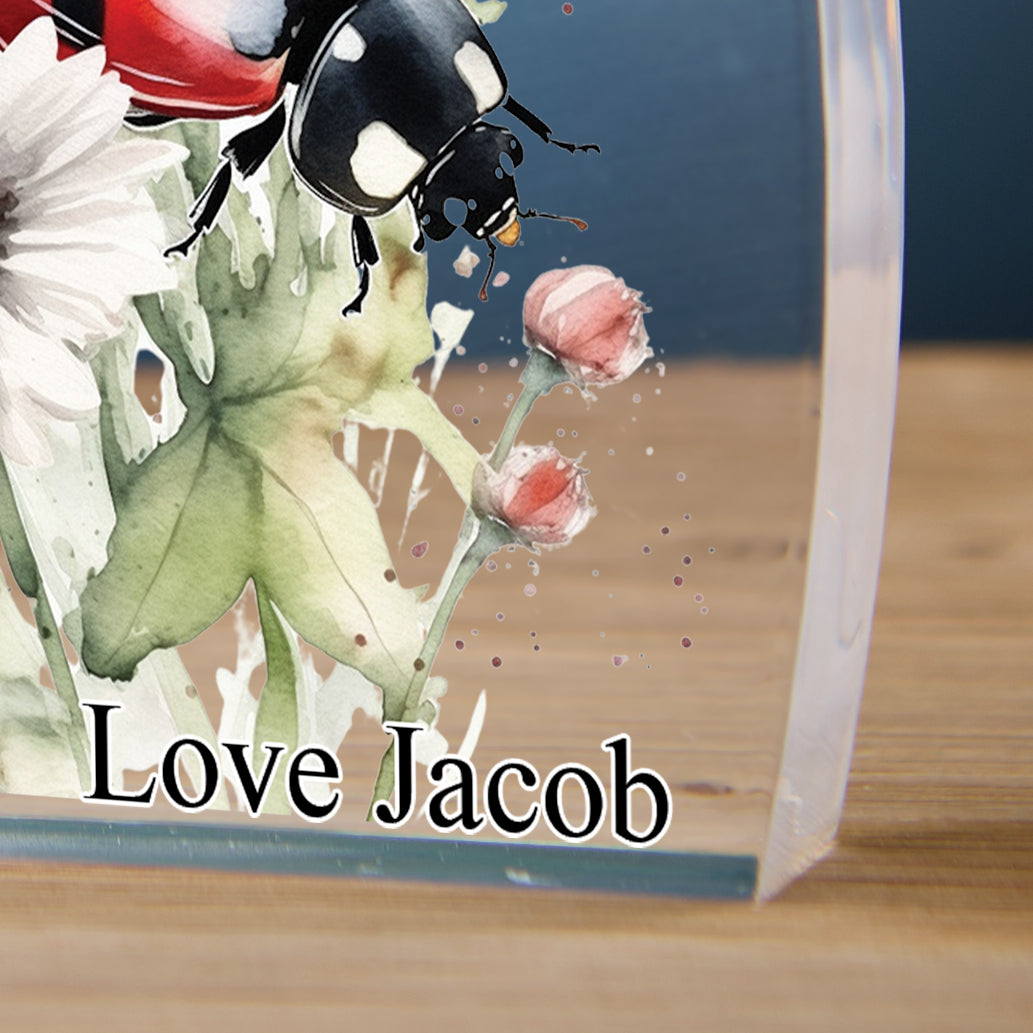 Beautifully made for any age, this Personalised Birthday Ladybird Heart Block is a unique and thoughtful gift...