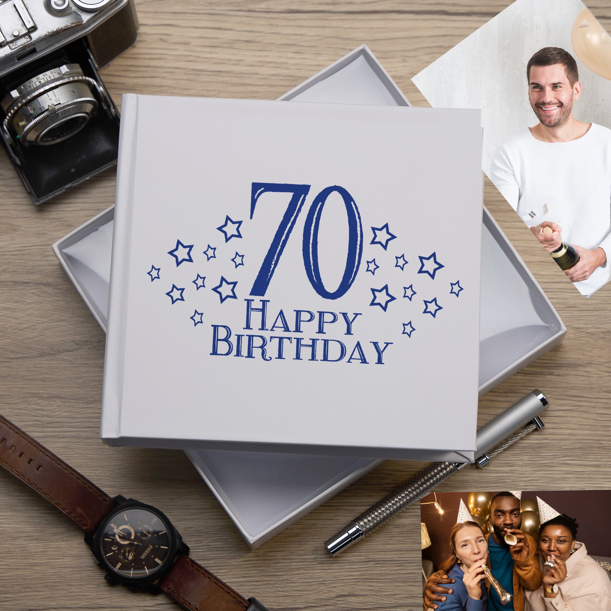 70th Birthday White Photo Album Gift For Him 50 x 6" x 4" Photos