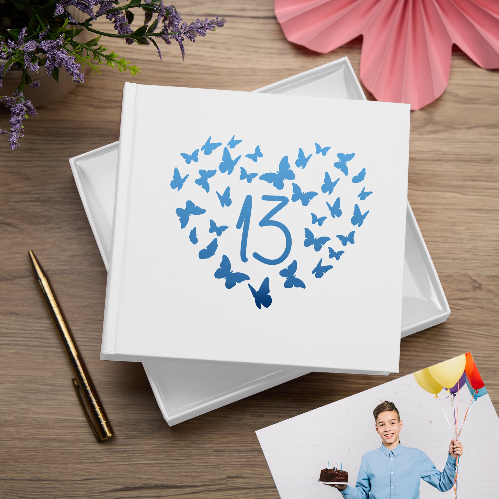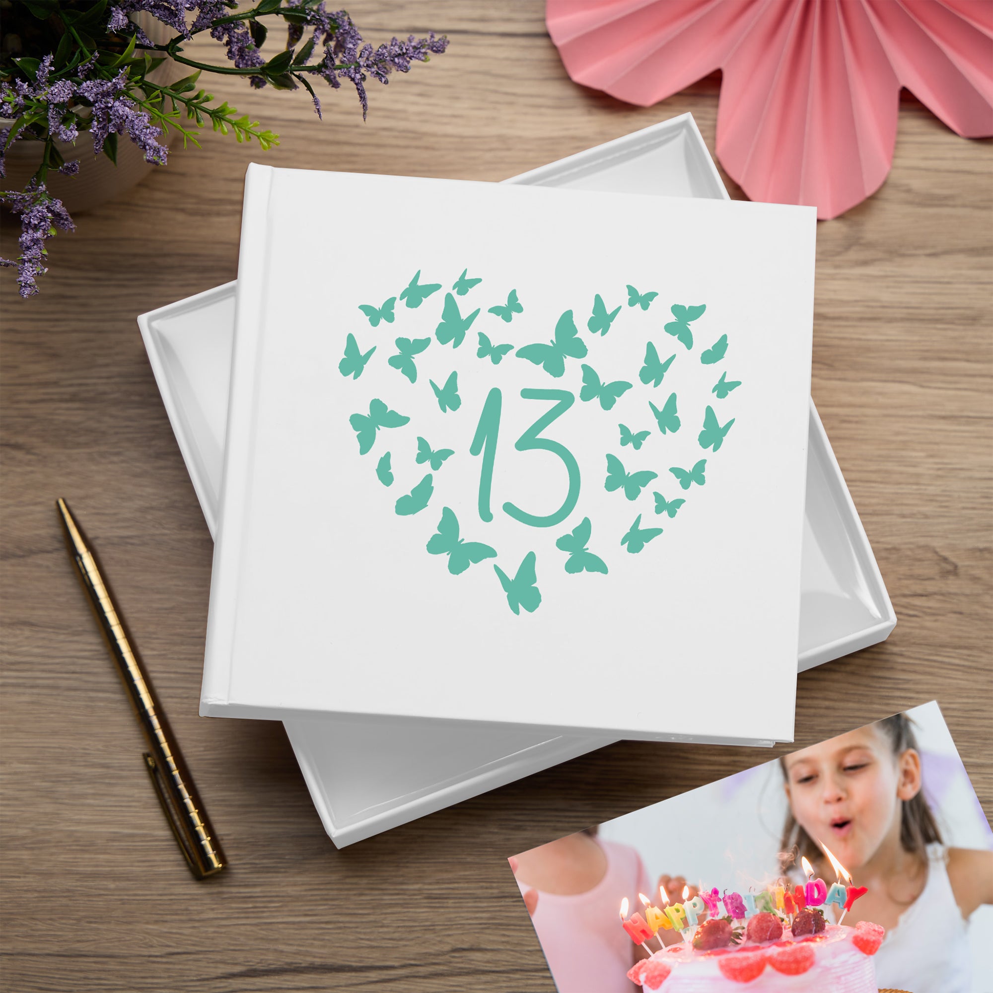 13th Birthday White Photo Album Gift With Butterflies 50 x 6x4 Photos