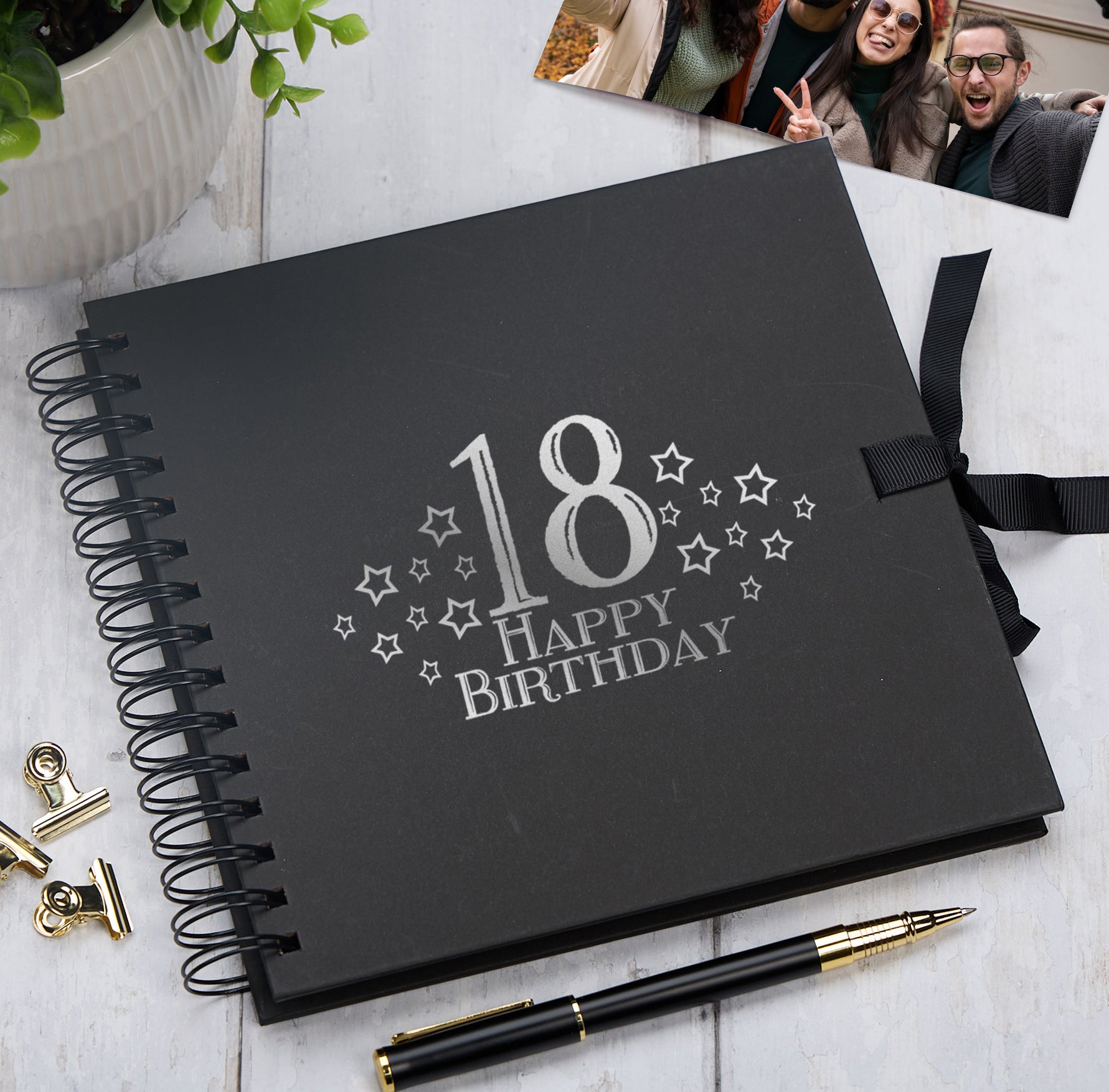 18th Birthday Black Scrapbook, Guest Book Or Photo Album with Silver Script