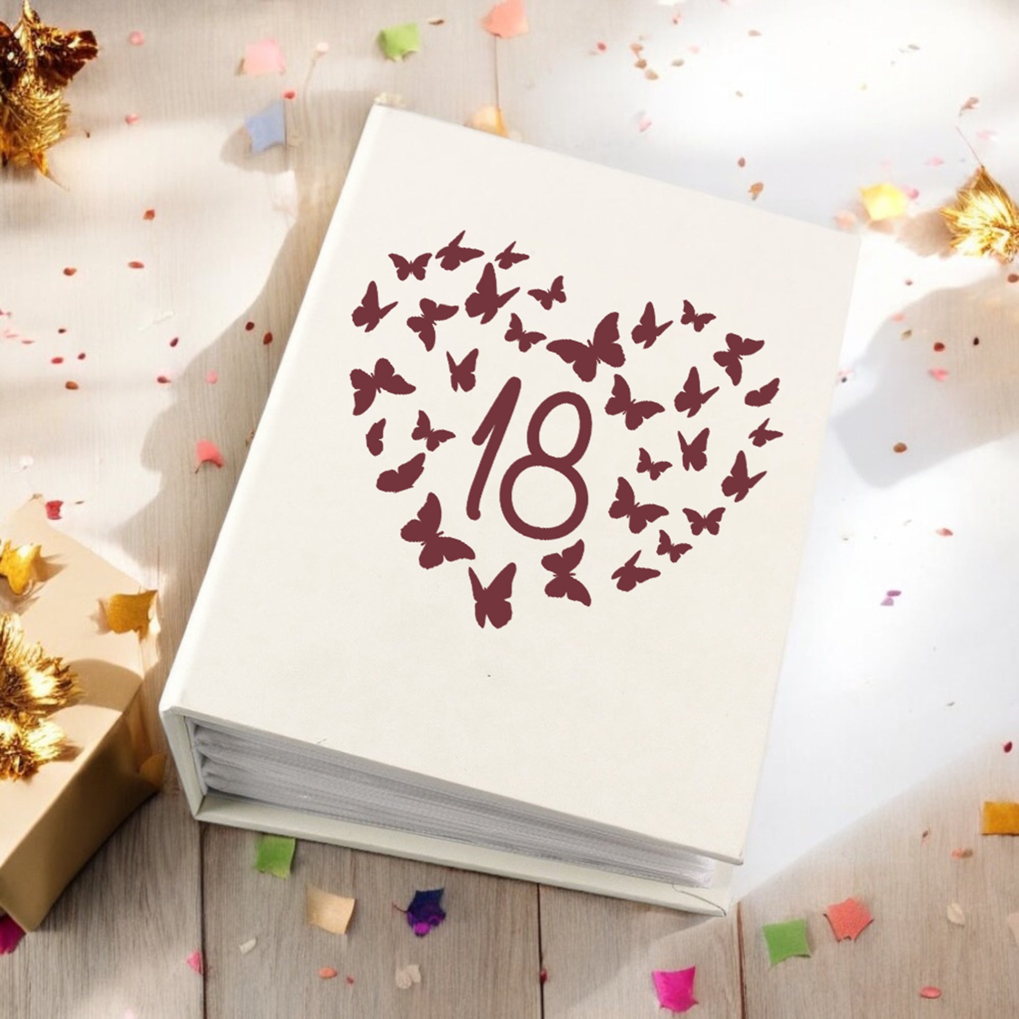 Relive the magic of your 18th birthday every time you flip through this stunning photo album featuring a delicate butterfly design. this timeless keepsake is a perfect way to preserve and display all the precious photos from your 18th birthday celebration. And with a massive 100 sleeve capacity, you can easily store and organize all your memories in one place. This thoughtful and stylish gift is sure to be treasured for years to come.