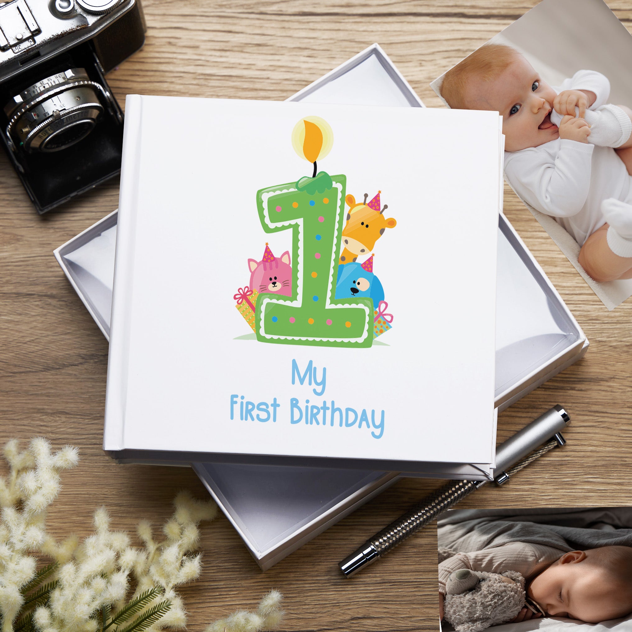 Capture every moment with ease using the 1st Birthday White Photo Album. This album can store up to 50 photos, each measuring 4"x6", making it perfect for preserving special memories. With a size of approximately 18.5cm x 19.5cm, this album is compact and convenient, and the photos are easily inserted into the album for quick organization. Additionally, there is ample space next to each photo for you to write down important details, allowing you to relive every moment in detail. Whether as a cherished keepsake or a thoughtful gift. This album comes neatly boxed, making it the perfect choice.
