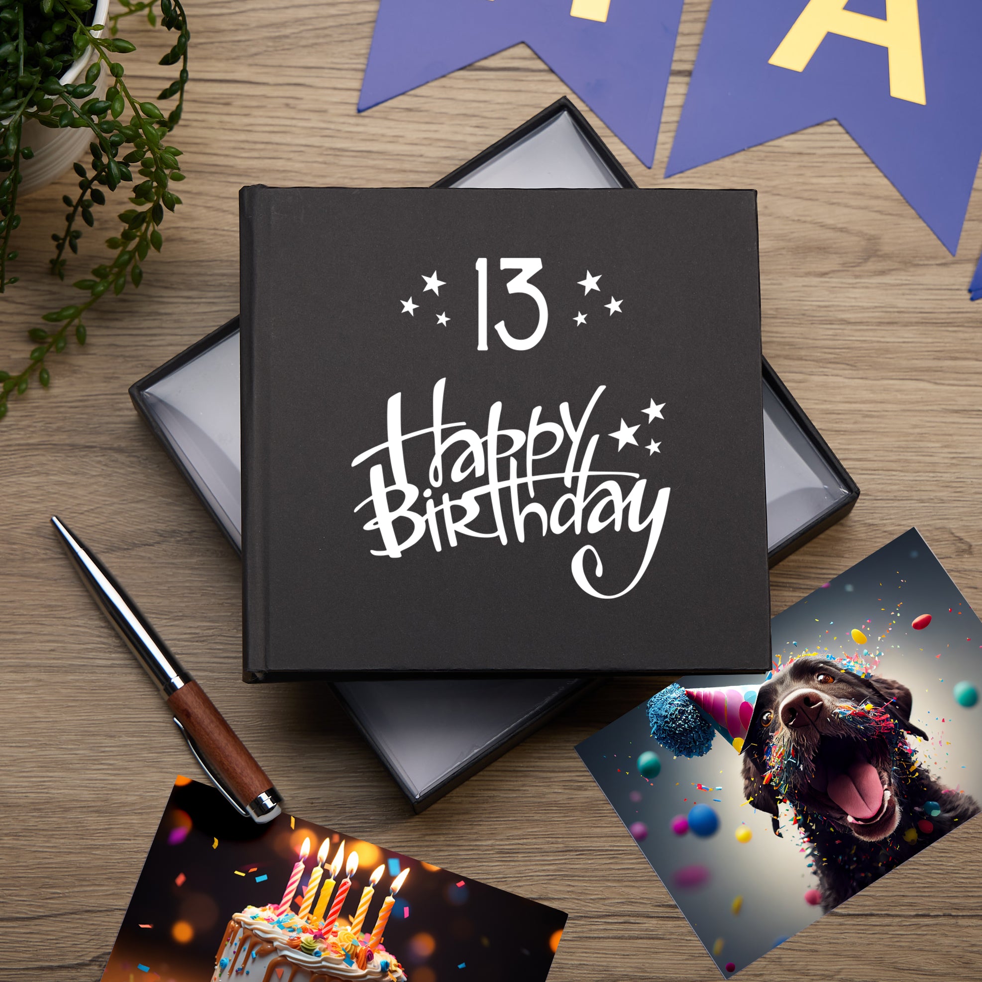 Capture every moment with ease using the 13th Birthday Black Photo Album. This album can store up to 50 photos, each measuring 4"x6", making it perfect for preserving special memories. With a size of approximately 18.5cm x 19.5cm, this album is compact and convenient, and the photos are easily inserted into the album for quick organization. Additionally, there is ample space next to each photo for you to write down important details, allowing you to relive every moment in detail. Whether as a cherished keepsake or a thoughtful gift. This album comes neatly boxed, making it the perfect choice.