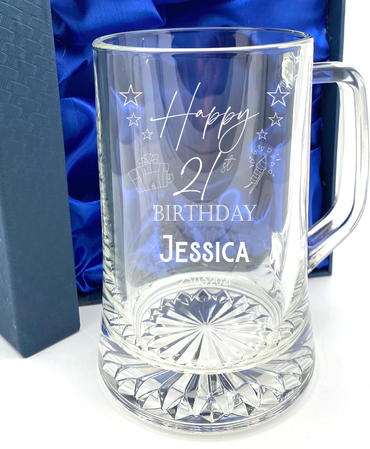 Engraved Personalised Birthday Beer Glass in A Silk Lined Gift Box 18th 21st 30th 40th 50th 60th 70th 80th