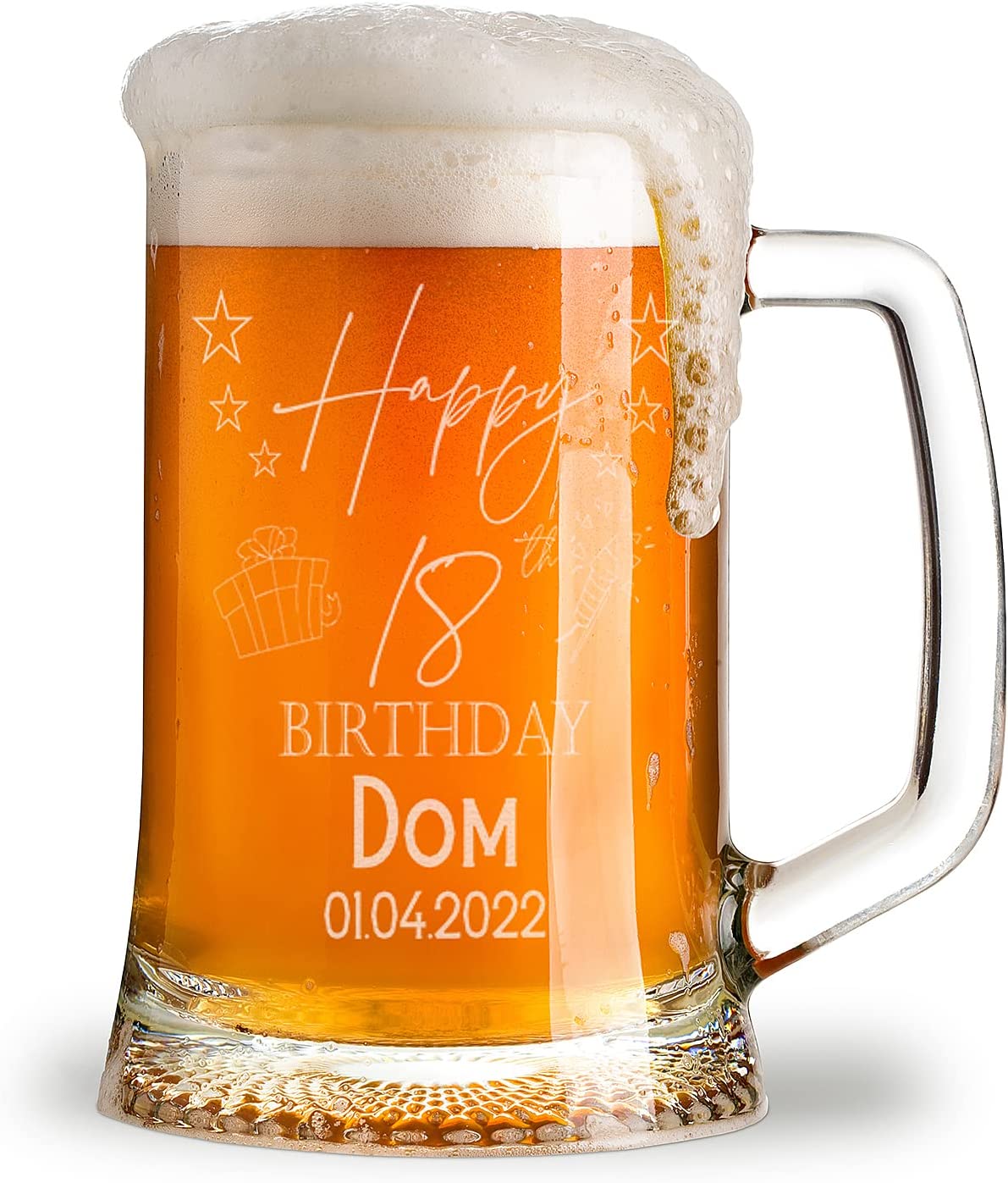 Personalised 18th Birthday Pint Beer Tankard Glass With Stars Engraved with a name and date of your...