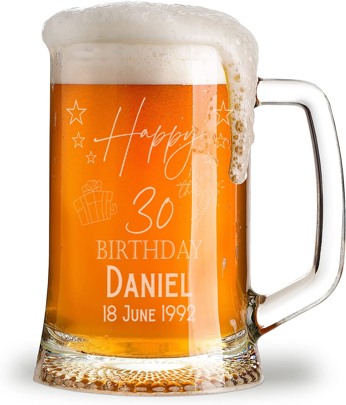 Personalised gifts are becoming more and more well-liked because they are distinctive and may enhance any event. The UK Gift Store offers a large selection of glass beer tankards that may be customised with a message and stars. This exquisite glass tankards can be the best gift to give to your brother or husband on his special day. Using a laser procedure, we may emboss the details of your choice onto this unique glass tankard. This personalised glass has a capacity of one pint and is presented in lovely packaging. Your loved one’s day will unquestionably improve as a result.