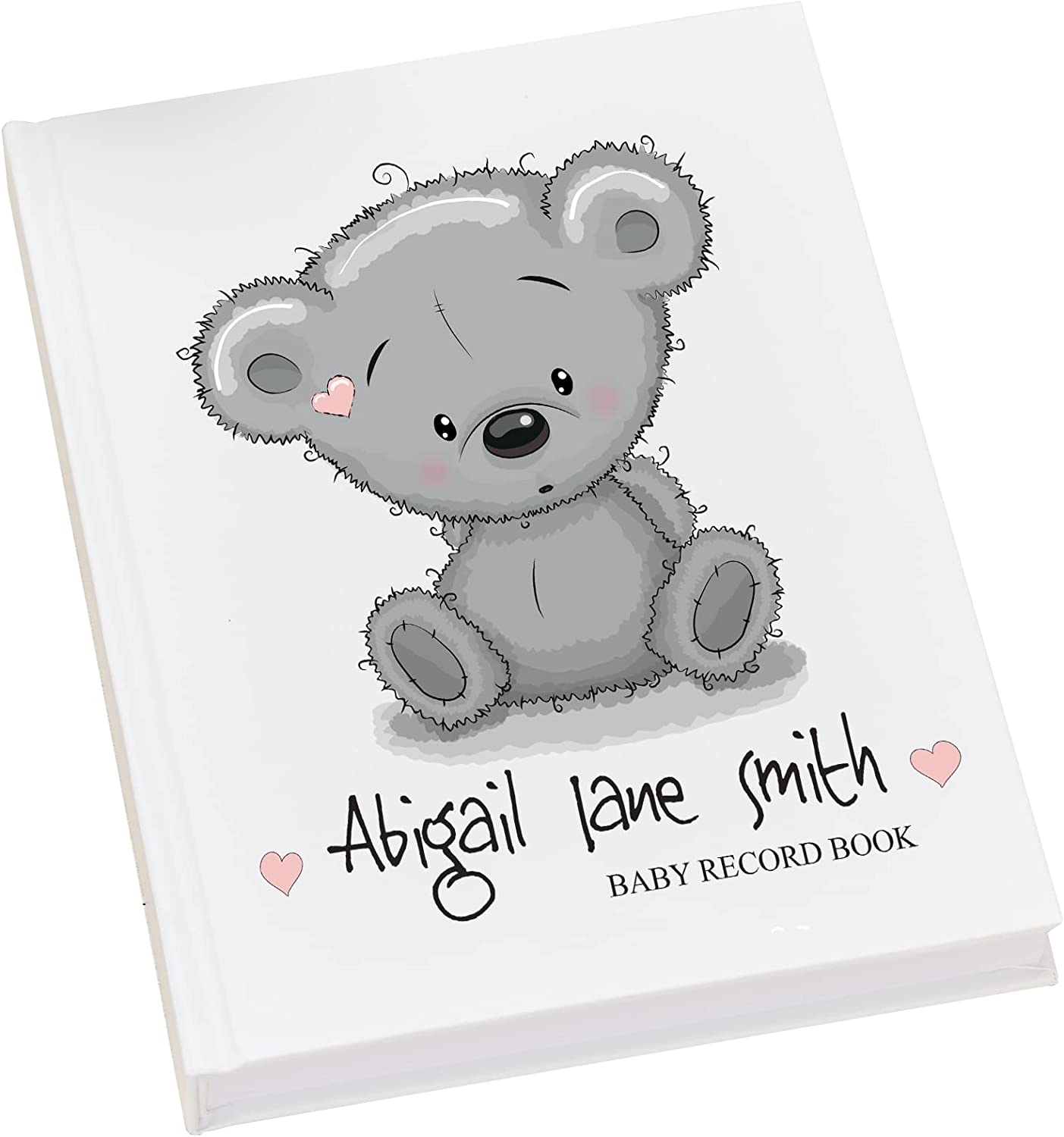 Personalised Baby Girl Record Book Keepsake Milestone Journal Teddy Design