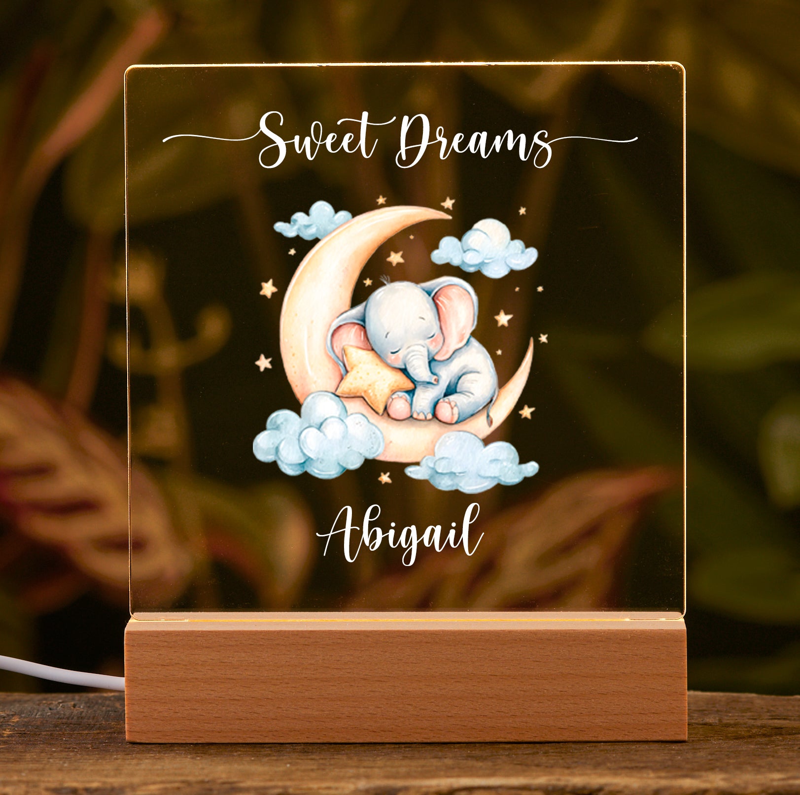This personalised LED nursery lamp stands about 22cm tall and features charming Elephant designs that add a soothing touch to any child's bedroom. Its customizable design allows you to add a personal touch, making it a unique and thoughtful gift for birthdays or special occasions. The gentle LED light provides a comforting glow that helps children feel safe and secure throughout the night, while its energy-efficient operation ensures long-lasting use. Perfect for nurseries and kids' rooms, this lamp combines practicality with a delightful decorative element.