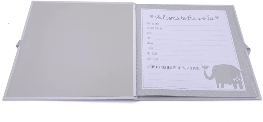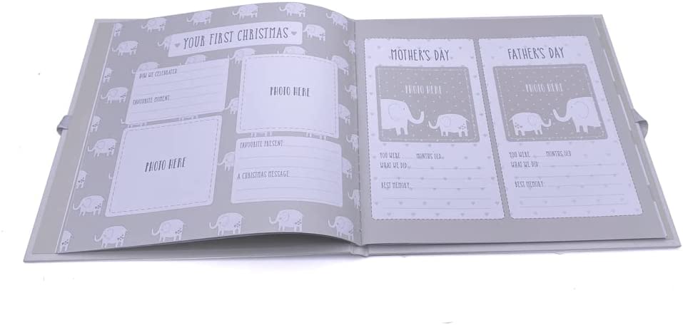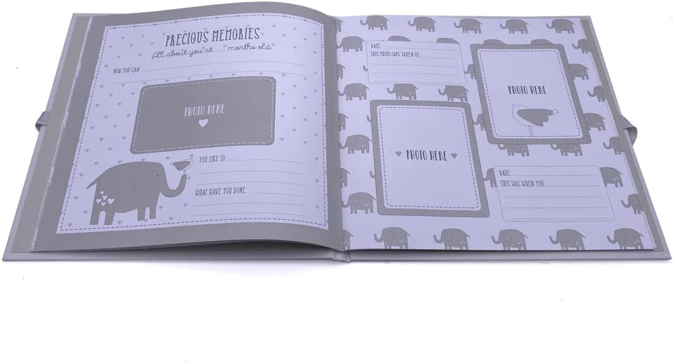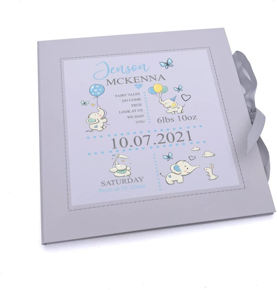 ukgiftstoreonline Personalised Baby Boy My First Year Keepsake Record Book With Elephants