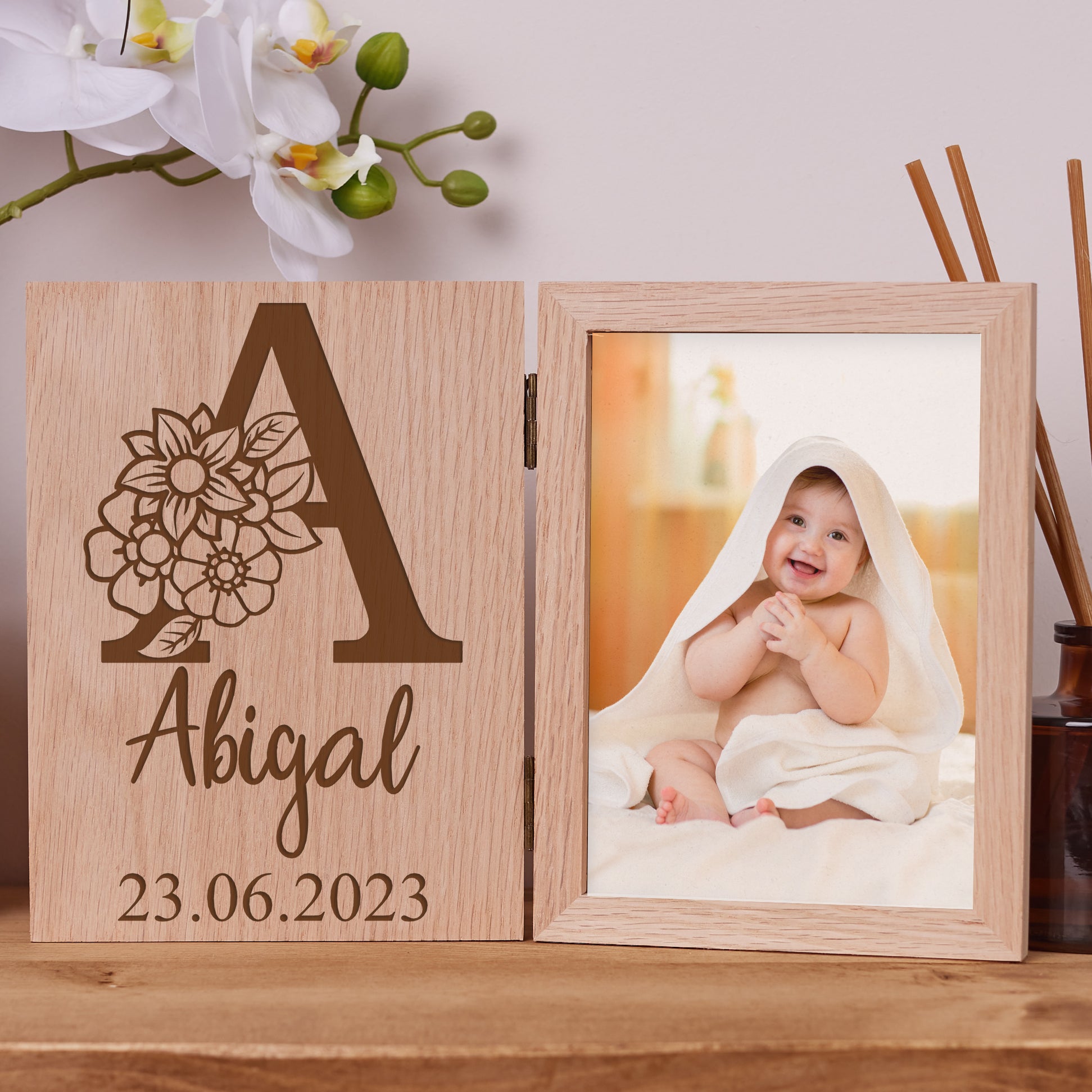 Cherish your precious memories with this beautiful solid oak wood frame. Its stunning finish and personalized engraving make it the perfect way to display your most treasured photos. With its double book design, you can showcase your photo on one side while admiring the beautiful engraving on the other. Measuring 31cm x 20cm x 1.5cm, this frame is perfectly sized to hold a 5" x 7" photo (13cm x 18cm).