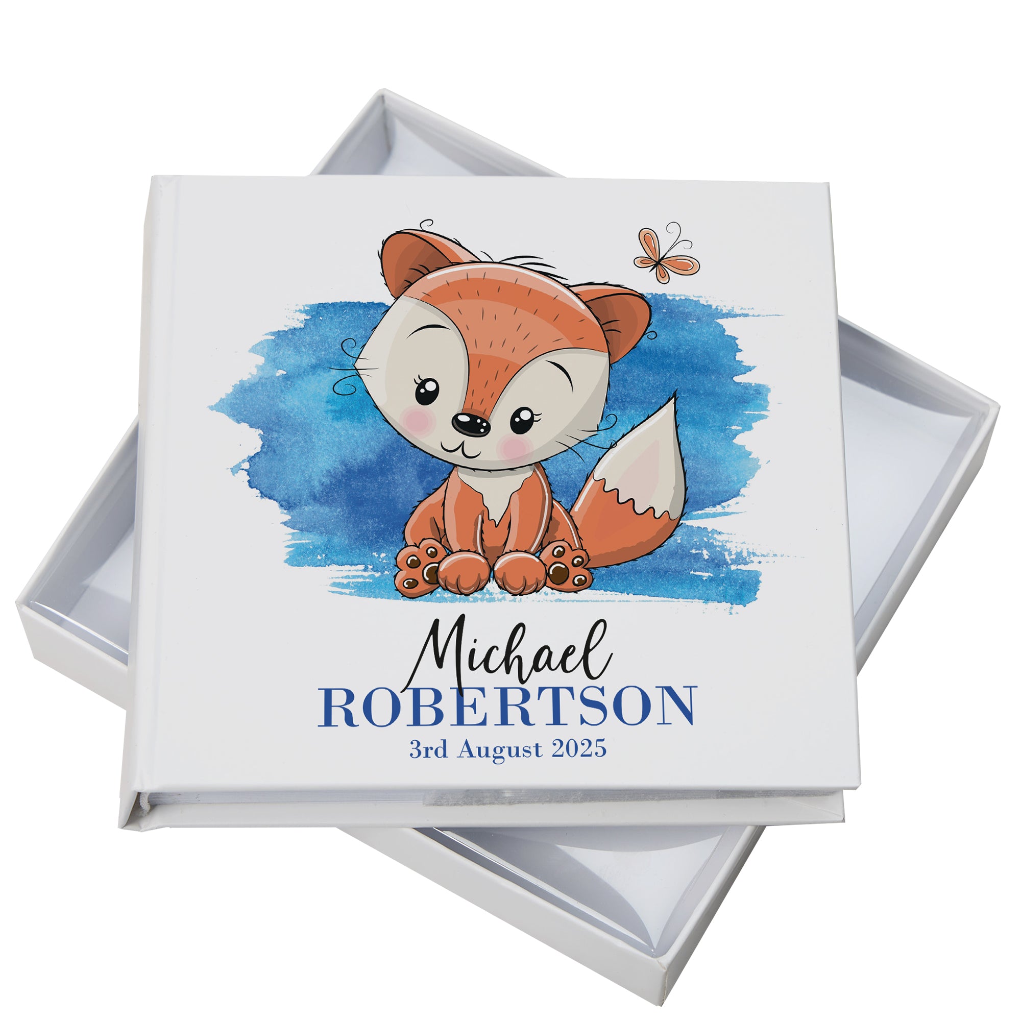 This expertly crafted album features a charming fox design and a thoughtful sentiment on the cover, personalised with the child’s name and birth date to create a meaningful keepsake. It holds 50 slip-in photos measuring 4" x 6", with dedicated space next to each photo for personal notes, milestones, or memories that add depth to your collection. Measuring approximately 18.5cm by 19.5cm, the album is perfectly sized to safeguard your treasured photos and stories. Presented in an elegant box, this photo album makes an ideal gift for new parents, christenings, or baby showers - offering a timeless way to preserve and celebrate the special moments.