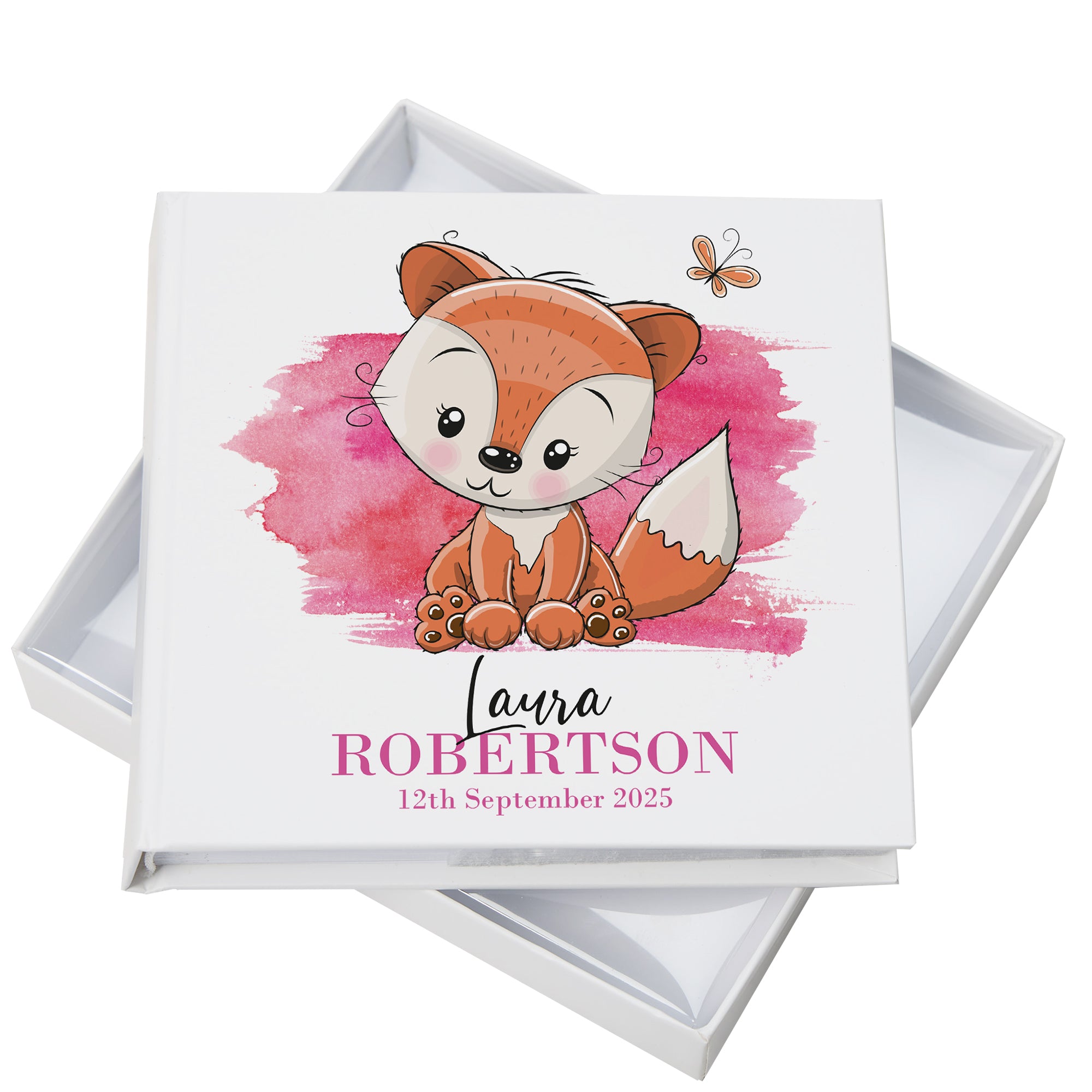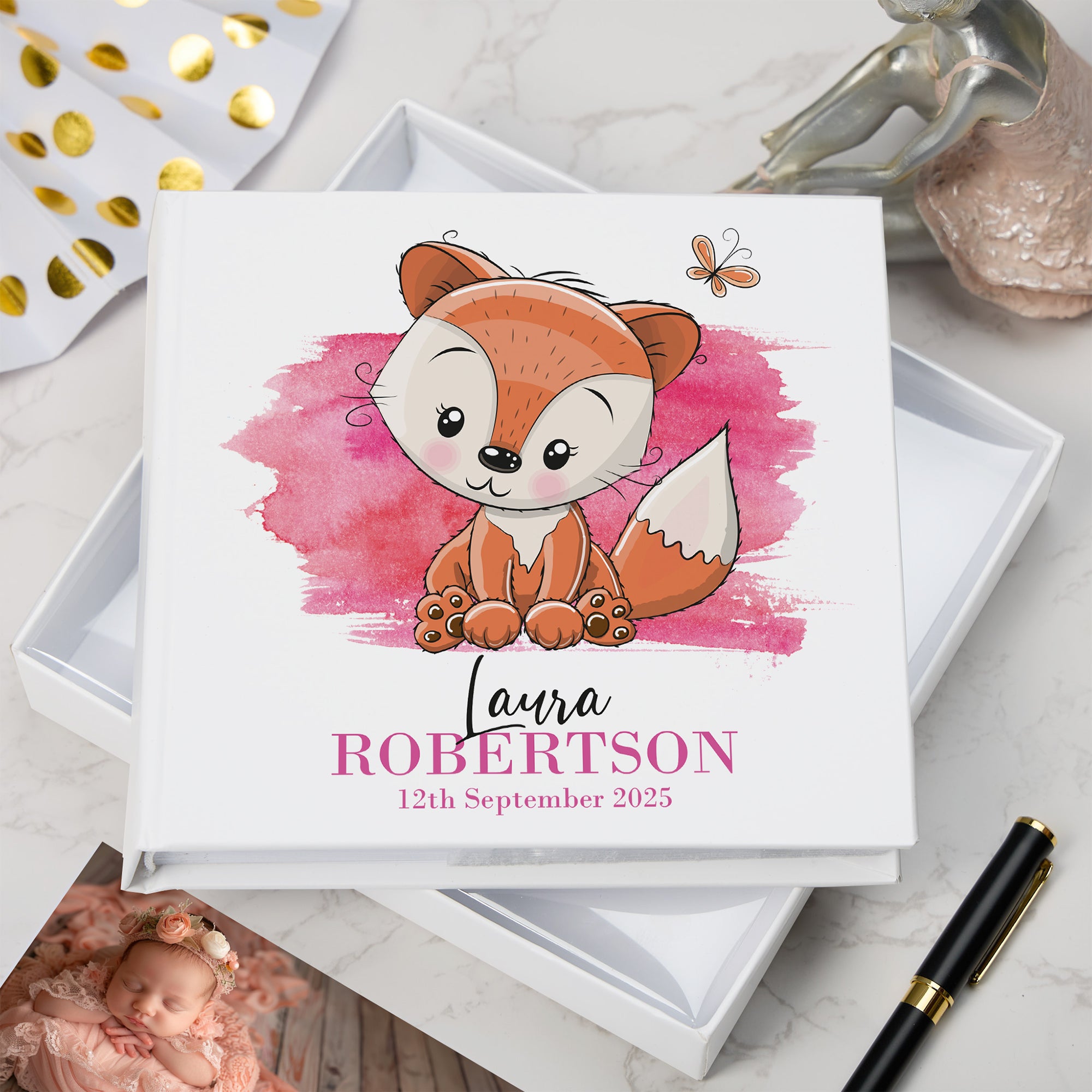 This expertly crafted album features a charming fox design and a thoughtful sentiment on the cover, personalised with the child’s name and birth date to create a meaningful keepsake. It holds 50 slip-in photos measuring 4" x 6", with dedicated space next to each photo for personal notes, milestones, or memories that add depth to your collection. Measuring approximately 18.5cm by 19.5cm, the album is perfectly sized to safeguard your treasured photos and stories. Presented in an elegant box, this photo album makes an ideal gift for new parents, christenings, or baby showers - offering a timeless way to preserve and celebrate the special moments.