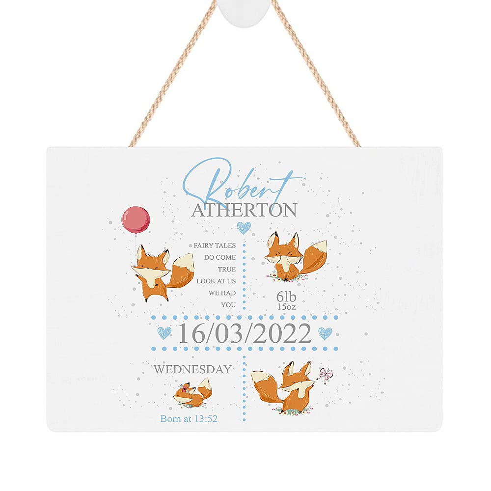 ukgiftstoreonline Personalised Baby Boy Hanging Rope Plaque Nursery Birth Details