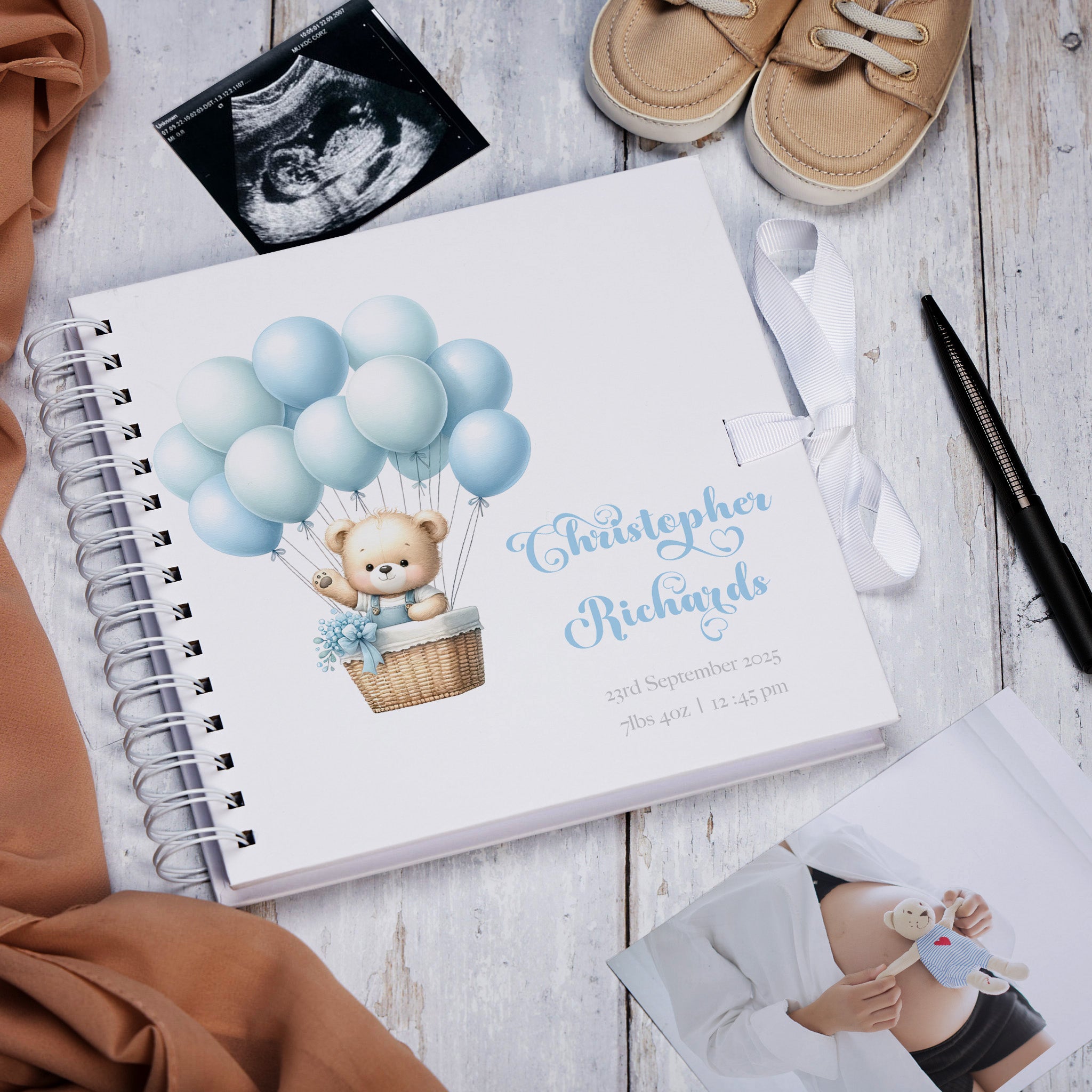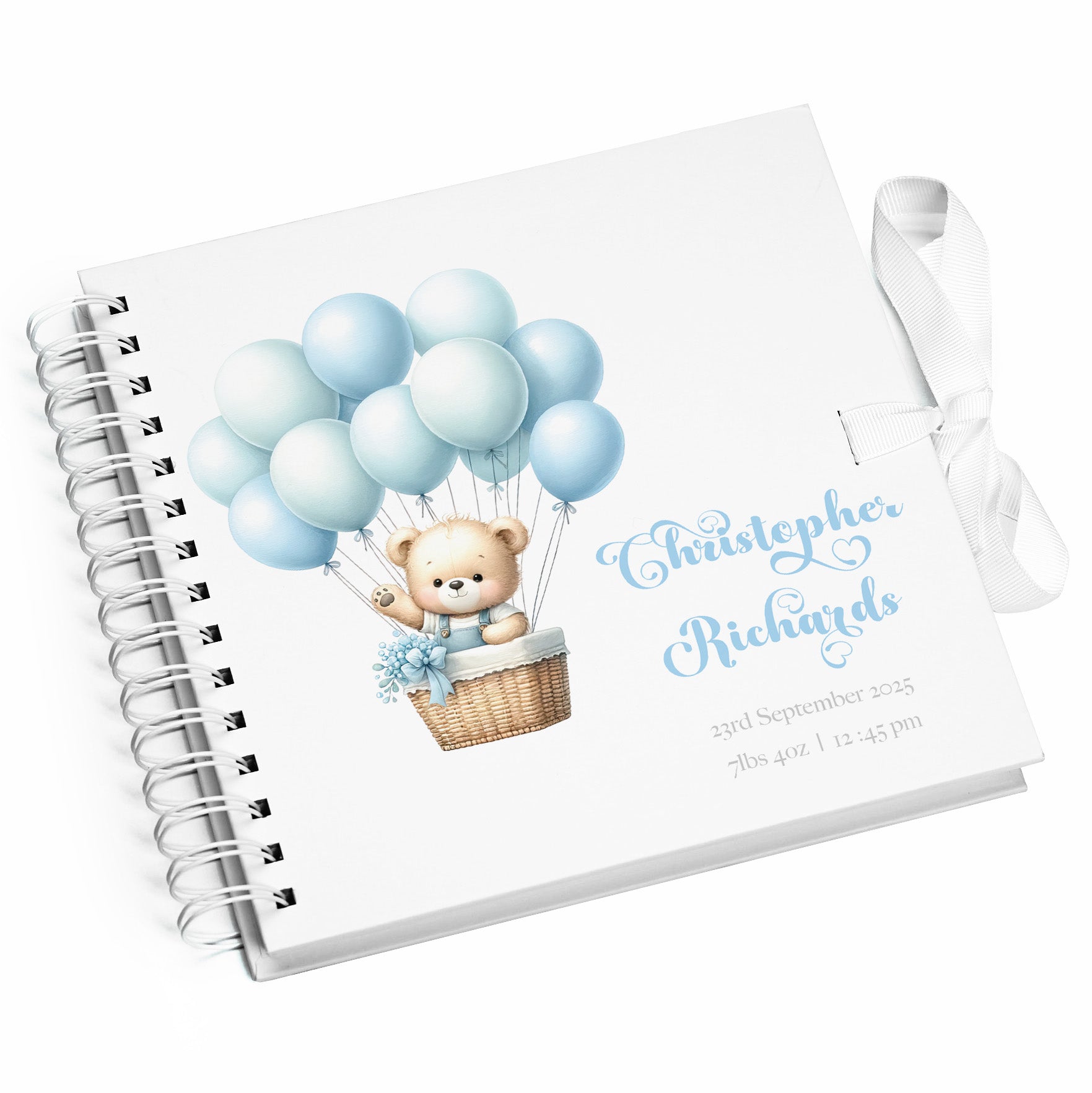 Personalised Baby Boy Scrapbook Photo album With Teddy and Balloons