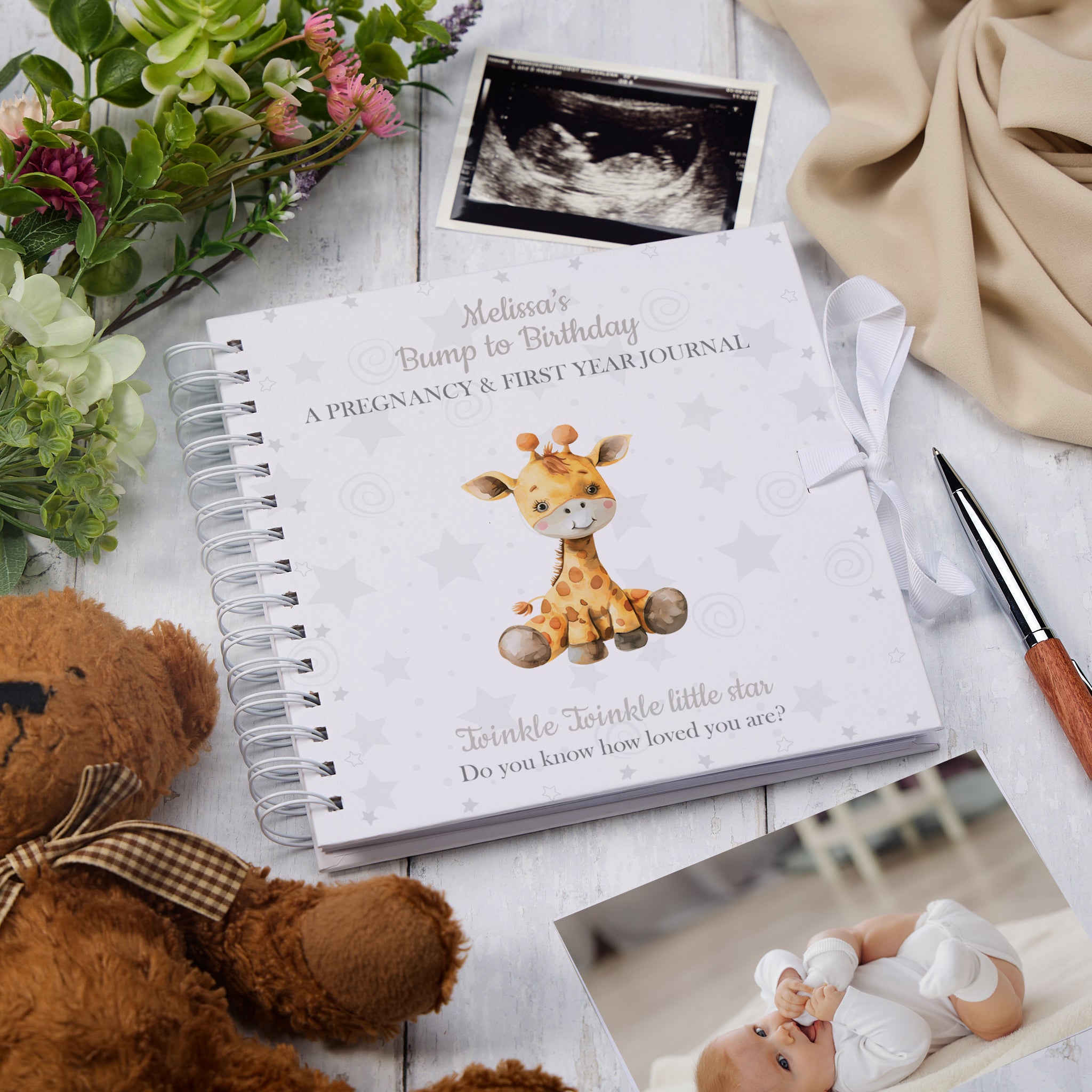 Personalised Pregnancy Journal and First Year Record Book Giraffe Themed