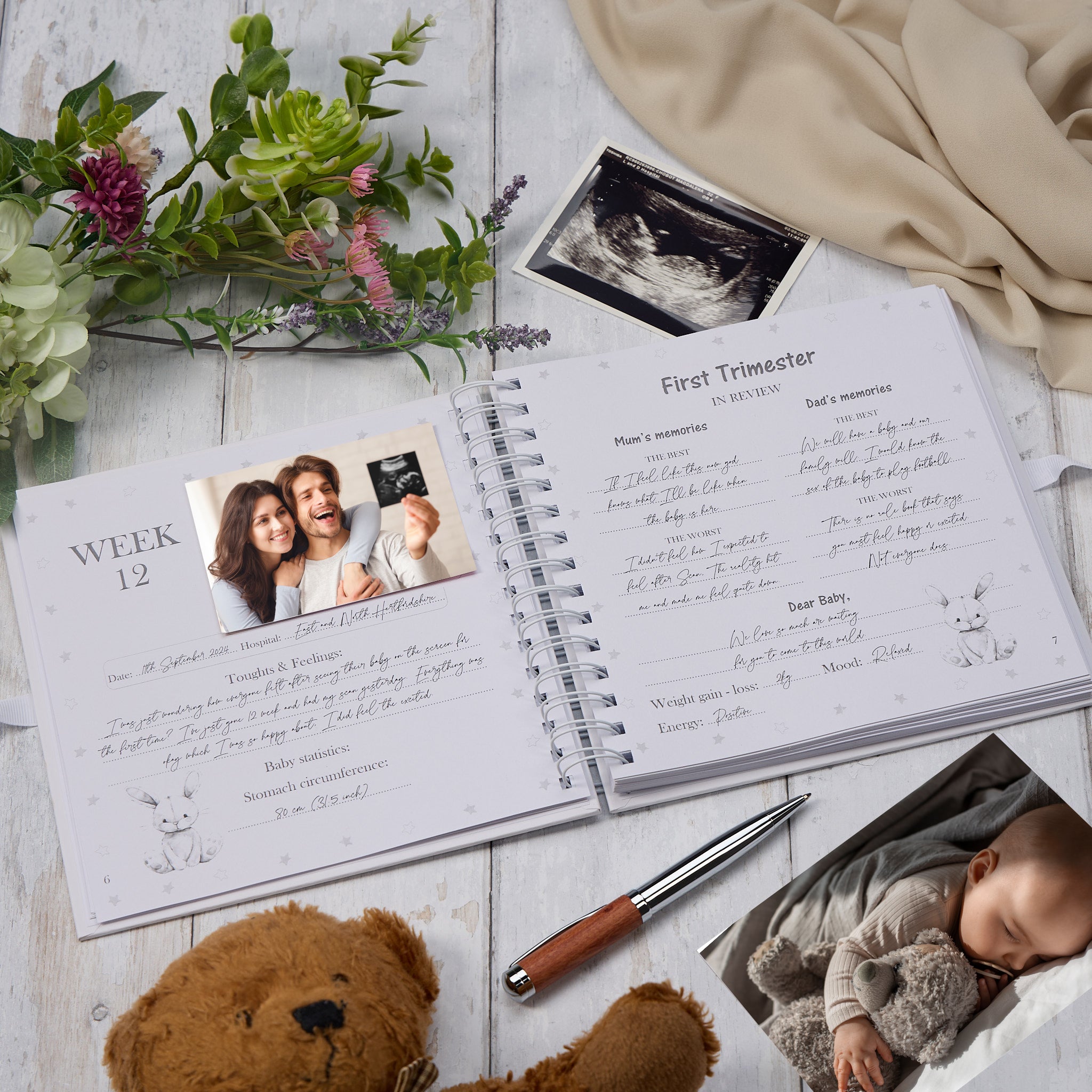 A customisable journal to help you document your pregnancy journey and keep track of your baby's first year. Record every special moment and milestone with ease and precision. Create a one-of-a-kind keepsake that you can treasure for a lifetime.