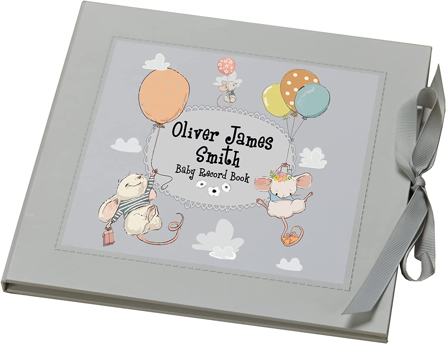 ukgiftstoreonline Personalised Baby Keepsake Memories Record Book With Mouse Sketches