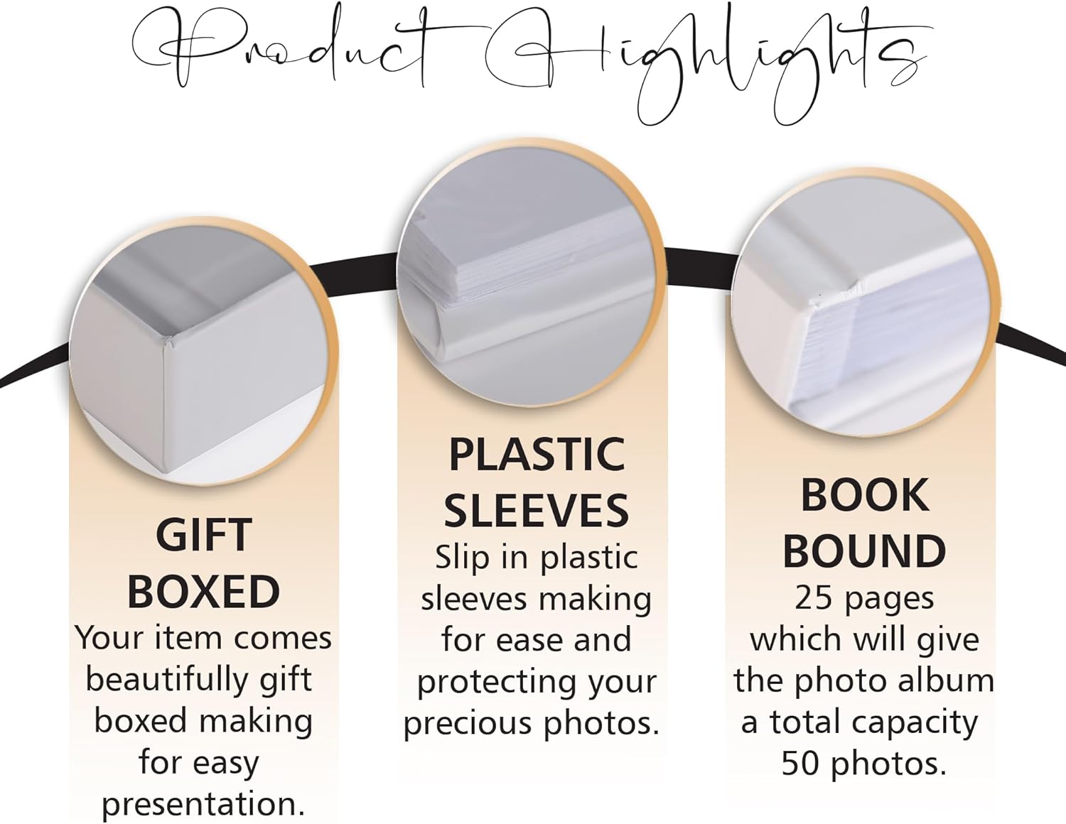 This album adds a unique touch to your tribute. Crafted elegantly and personalised just for you, it's a beautiful way to honour your loved one. With room for up to 50 6x4 photos, this album offers plenty of space to capture every treasured moment. Measuring approximately 18.5cm x 19.5cm, it's the perfect size for safeguarding your memories. And to keep them even more secure, each album comes with a protective box.