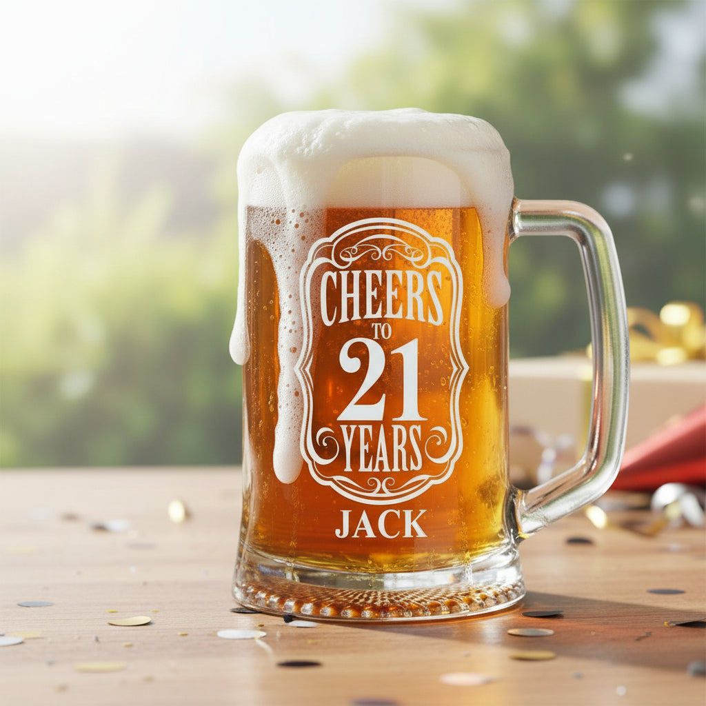 Cheers to 21 Years Personalised Beer Tankard – Custom Engraved 21st Birthday Gift