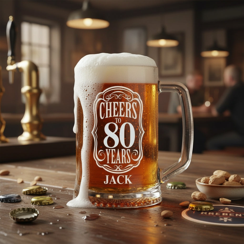 Personalising a tankard adds a special touch of thoughtfulness that will make your loved one feel cherished. The custom engraving with their name and "Cheers to 80 Years" demonstrates that you've invested time and care into creating something uniquely meaningful. It's a gift that says "I see you, I celebrate you, and you matter to me."