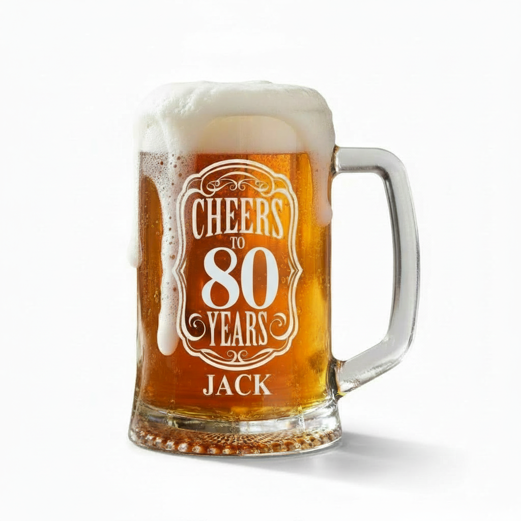 Turning 80 is a very big accomplishment – a remarkable milestone worthy of a distinguished gift. This personalised beer tankard celebrates eight decades of life with both style and substance. Unlike mass-produced gifts, the custom engraving with "Cheers to 80 Years" and the recipient's name transforms a standard drinking glass into a meaningful keepsake that acknowledges this extraordinary achievement. Every time the recipient enjoys their favourite beverage, they'll be reminded of this special celebration and your thoughtfulness.