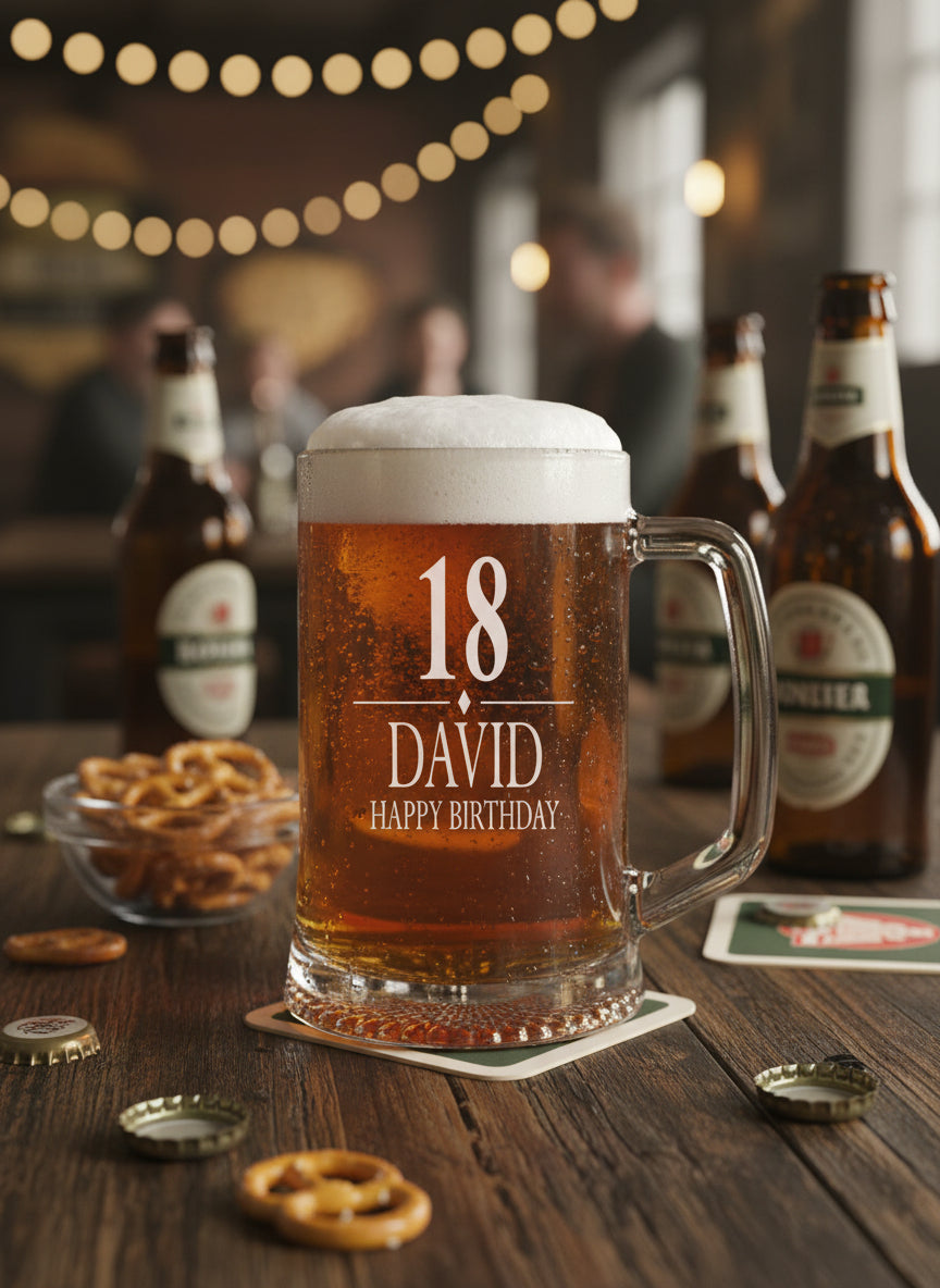 Give a gift that combines thoughtfulness with effortless elegance. Our bespoke personalised beer tankards are crafted to celebrate milestone birthdays – from 18th through 80th – with a keepsake that resonates long after the occasion. This versatile gift works beautifully for any age celebration, transforming a functional drinking vessel into a meaningful tribute to the birthday celebrant.