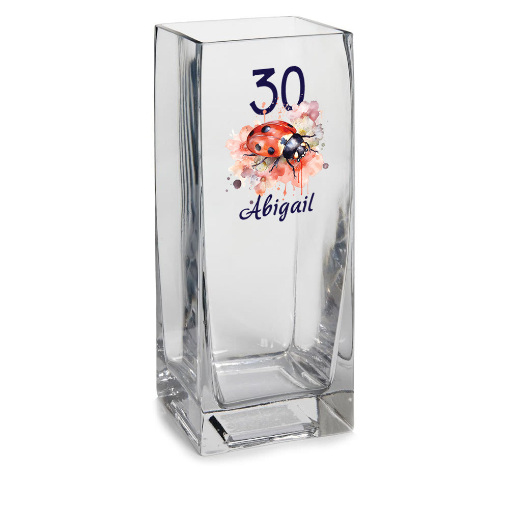 Personalised Birthday Flower Vase Gift Any Age With Ladybird 70th, 60th, 50th, 40th, 30th, 21st