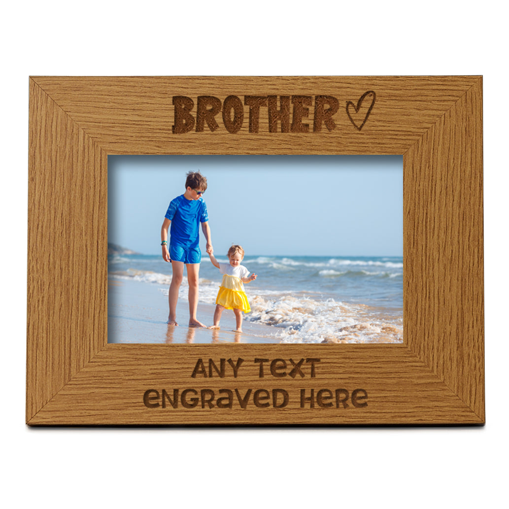 A lovely wooden frame to display that all important or memorable photo .The frame has a oak wood finish with and comes with "Brother" on top and a heart design to the side