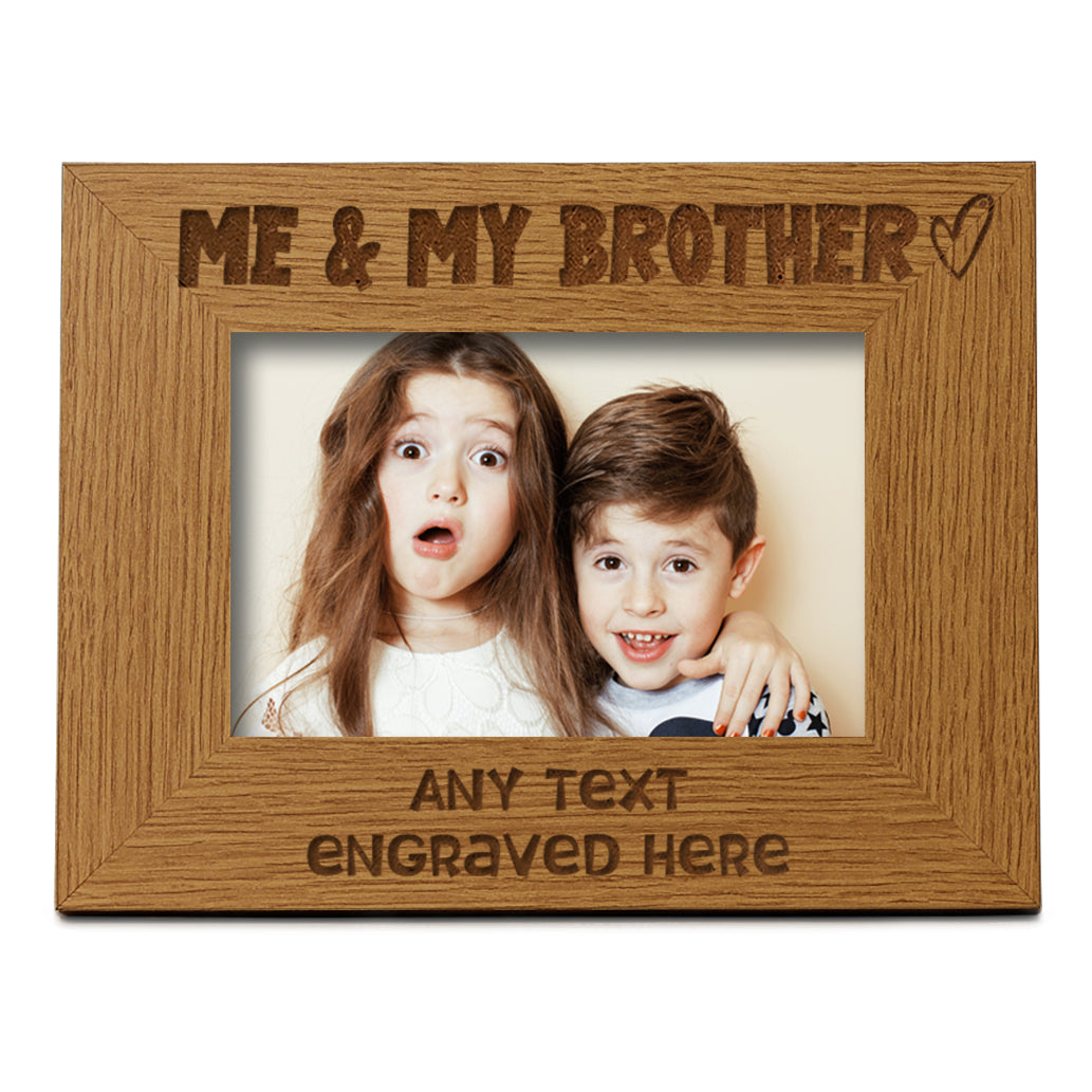A lovely wooden frame to display that all important or memorable photo .The frame has a oak wood finish with and comes with "Me and My Brother" on top and a heart design to the side