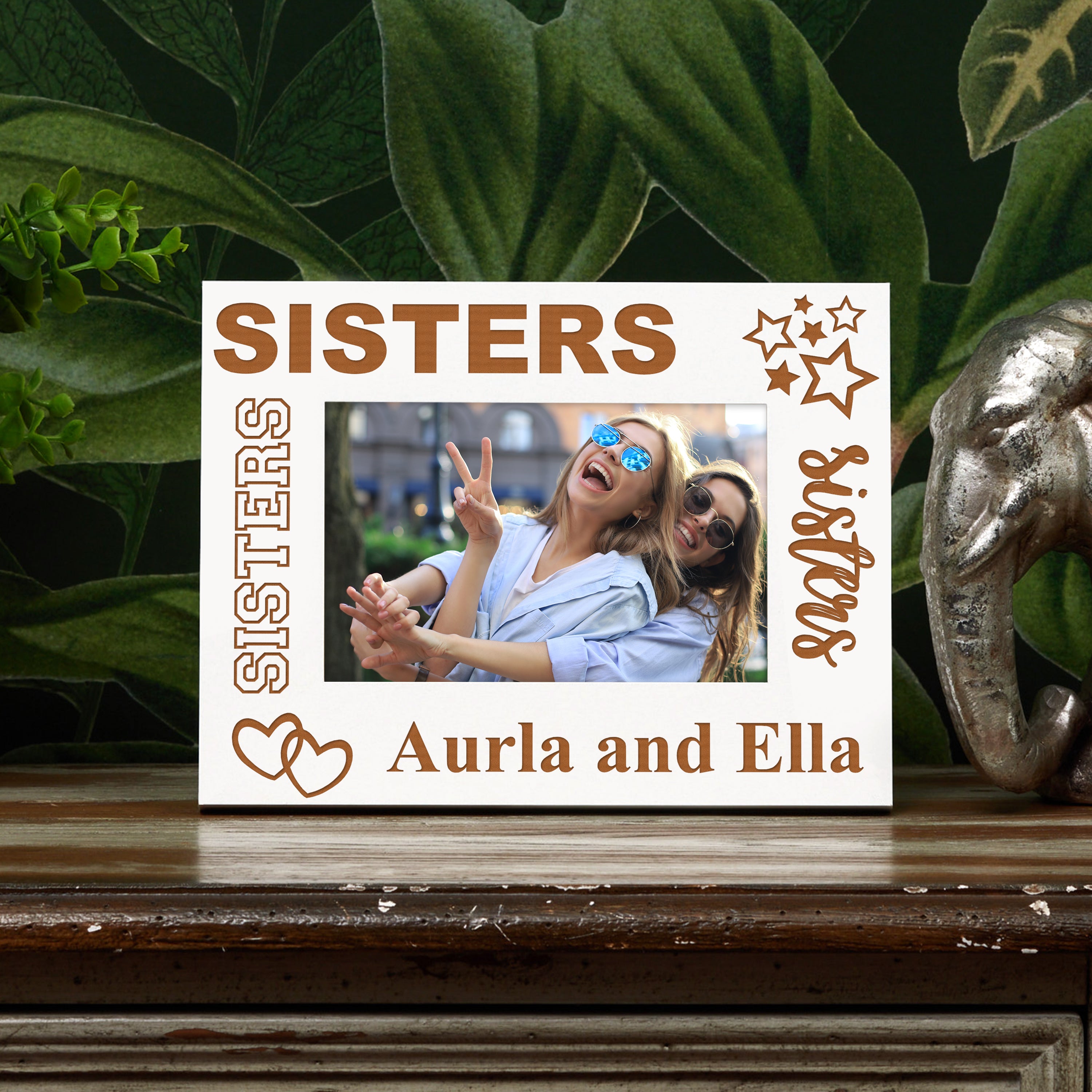White Engraved Sisters Sentiment Personalised Photo Frame Gift