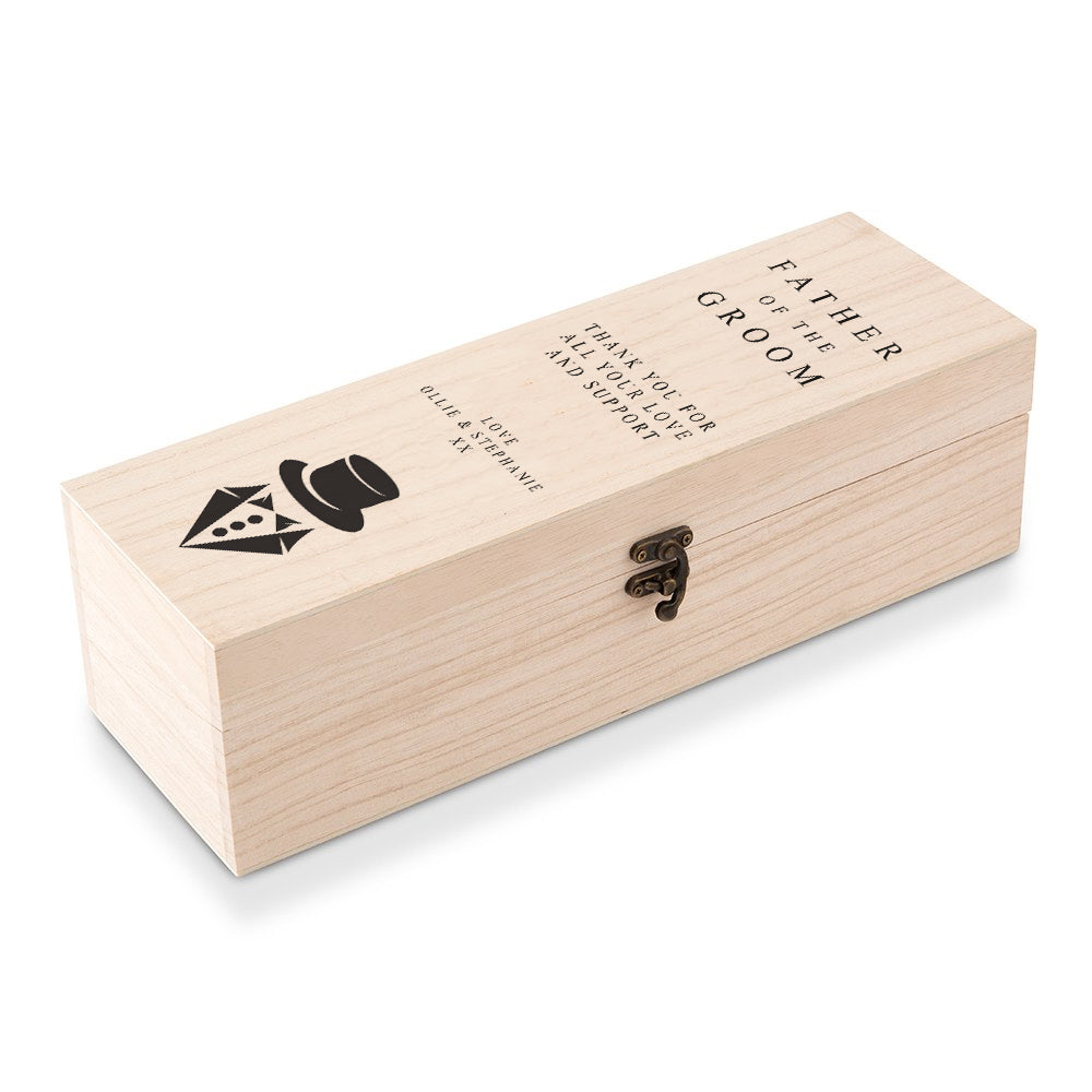 This personalised wine or champagne box gift is the perfect for a wedding gift. Made from high-quality wood, it is sure to impress, and its personalised engraving adds a thoughtful final touch that is sure to be cherished. Give the father of the groom an unforgettable present!