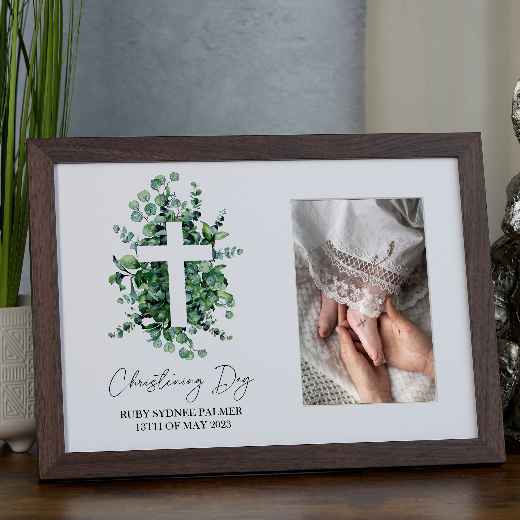 Personalised Christening Day Photo Frame Gift With Cross Christening Day Memory Keepsake