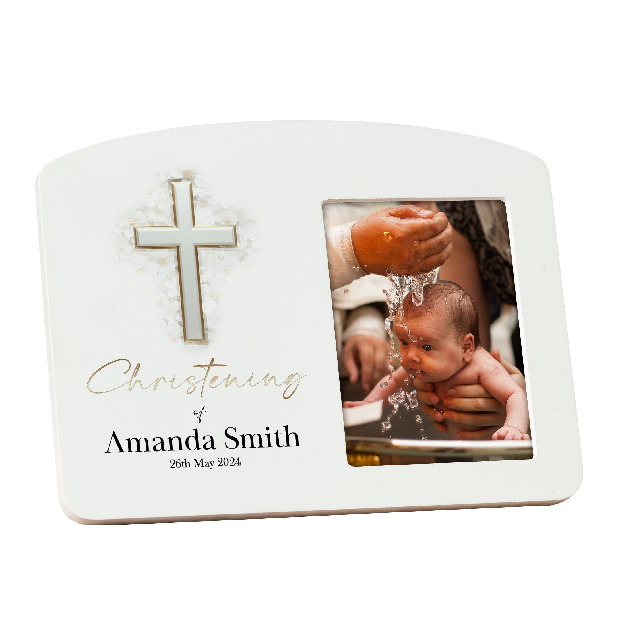 Personalised Christening Photo Frame With Silver Cross