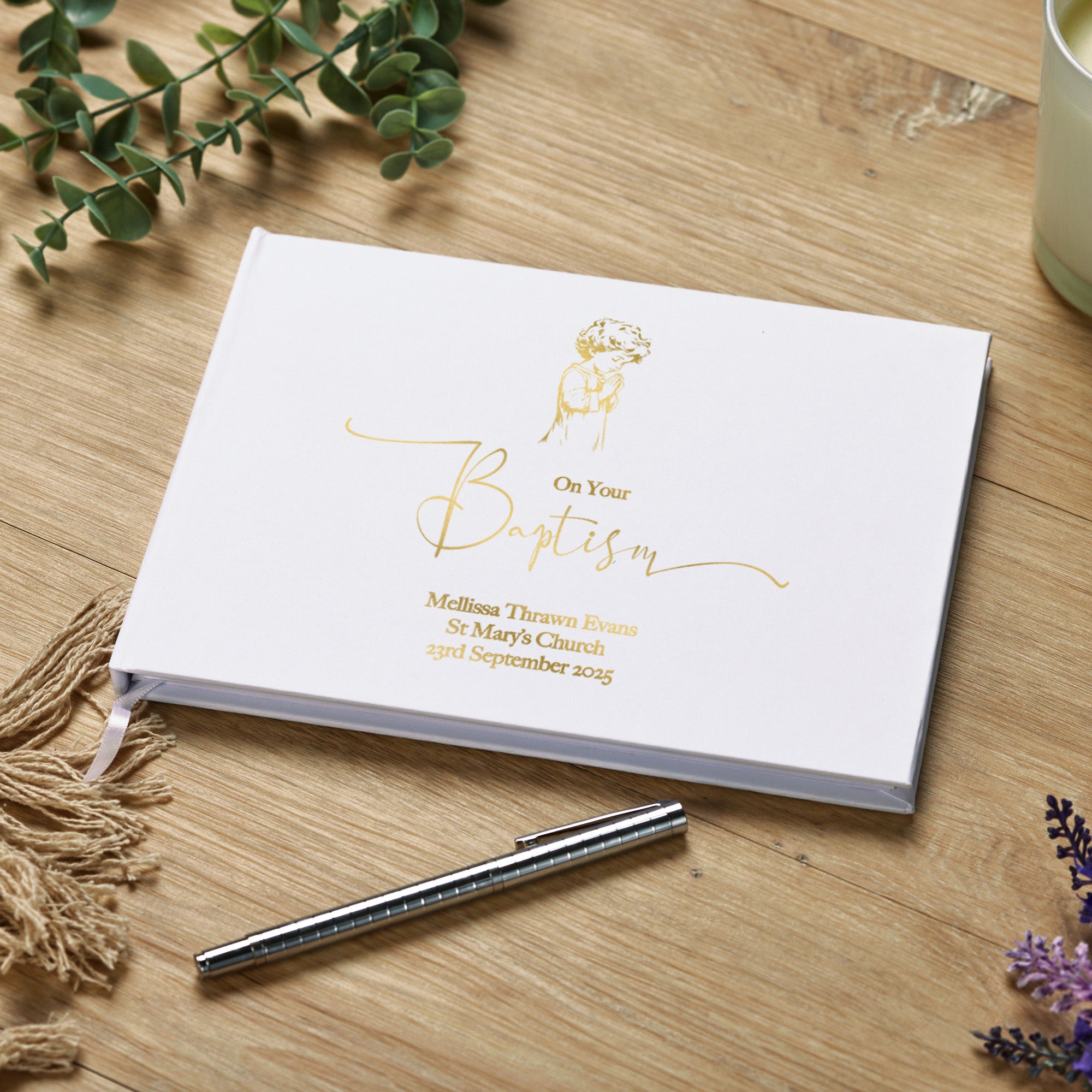 Elegantly designed Personalised Boy Baptism Guest Book.  Capture and preserve your cherished baptism memories with our Personalised...