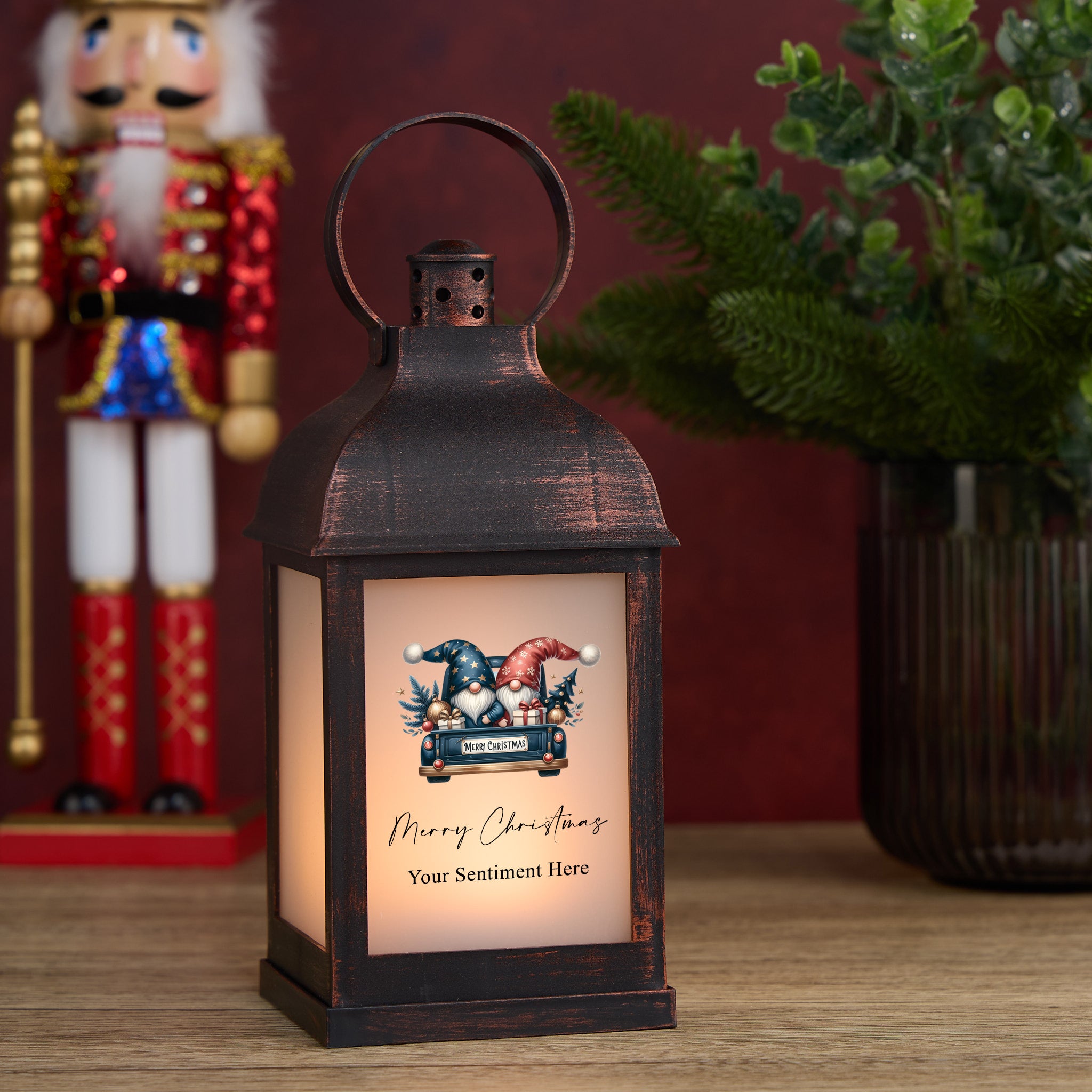 The lantern is Battery Powered and has a Realistic flickering orange flame effect within the fixed candle. Hoop attached at the top for hanging. The on/off switch is positioned on the bottom of the base.