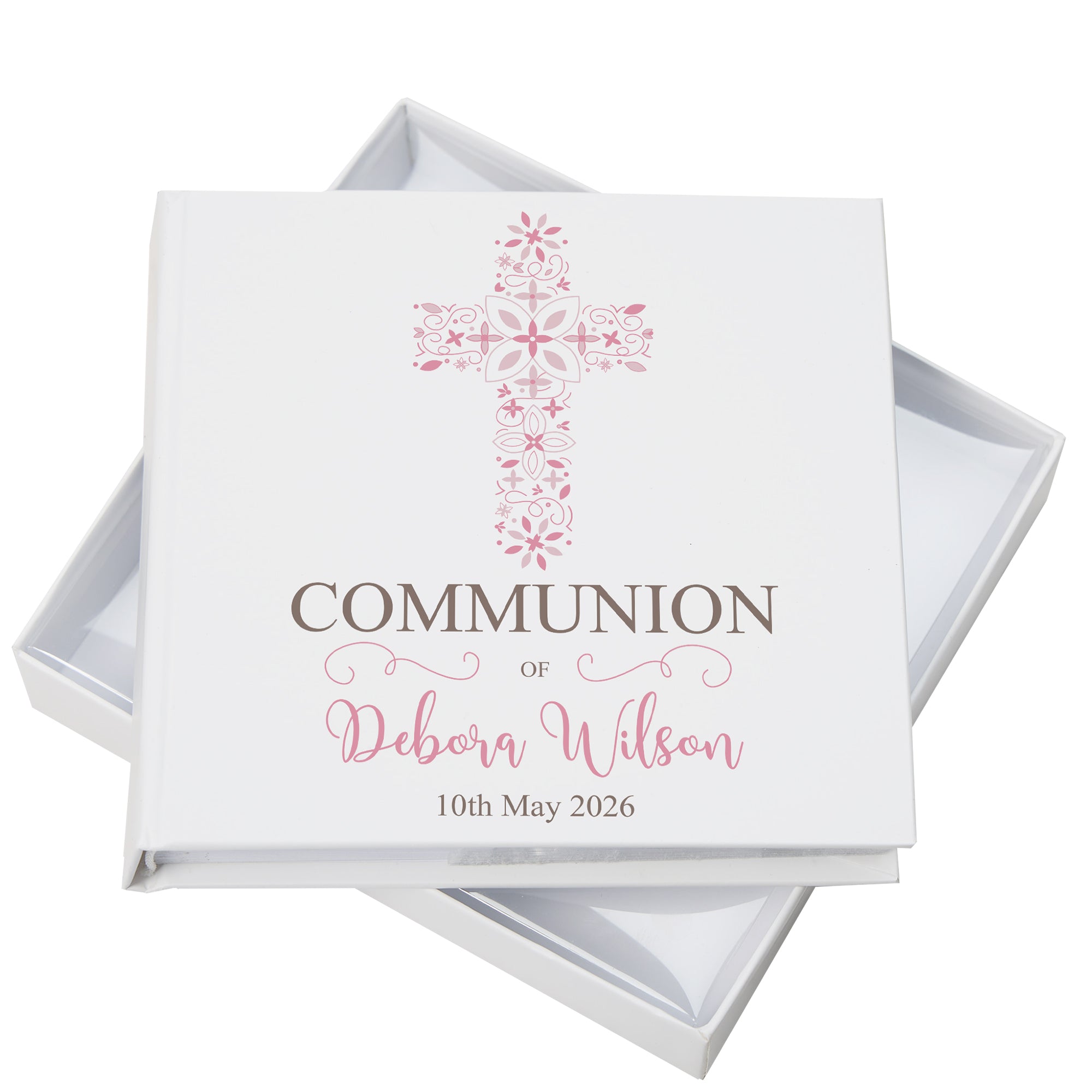 Capture and preserve the cherished moments of a special First Holy Communion with this Personalised Communion Pink...