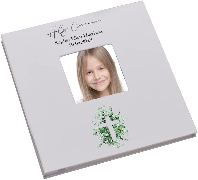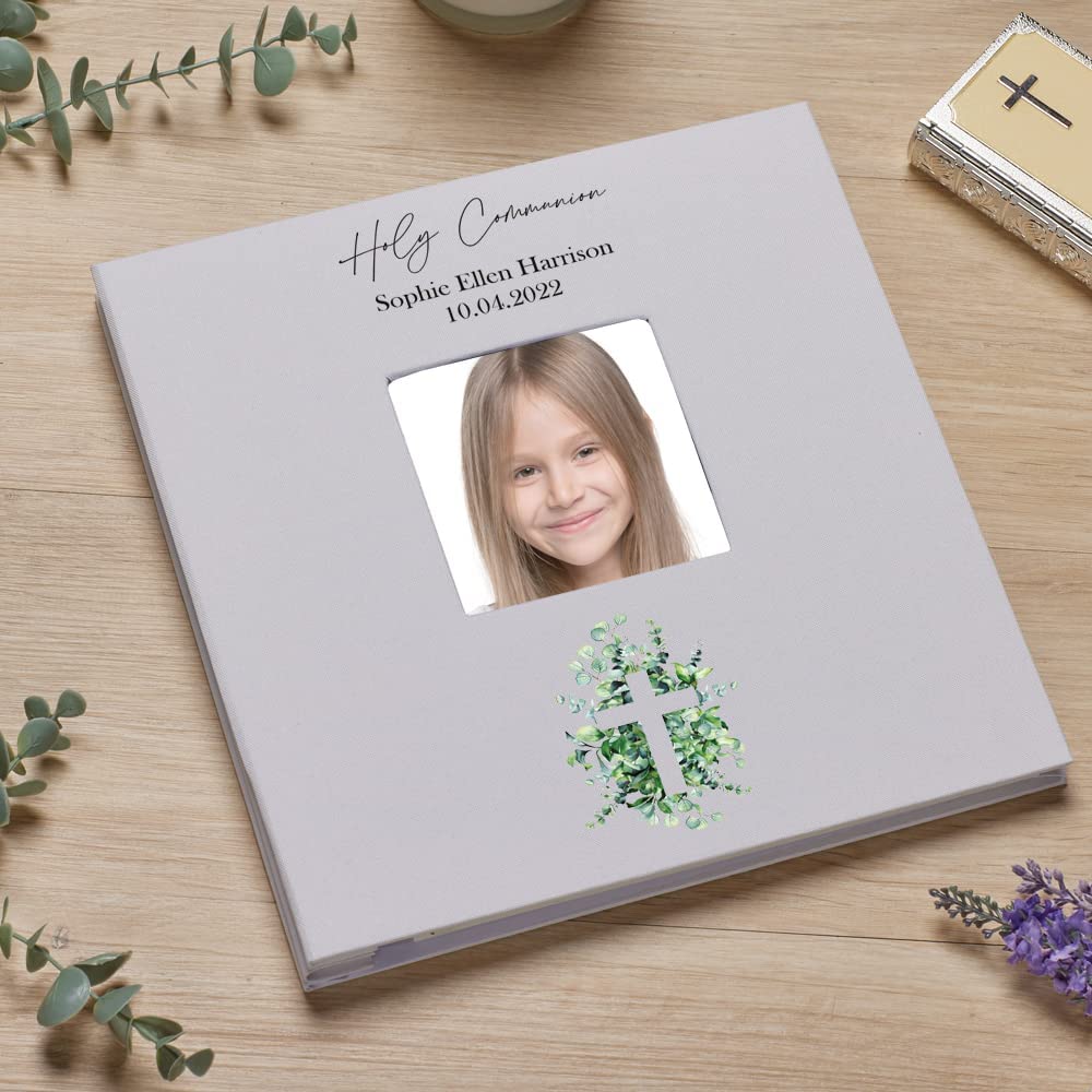 Personalised Holy Communion Photo Album Linen Cover Leaf and Cross