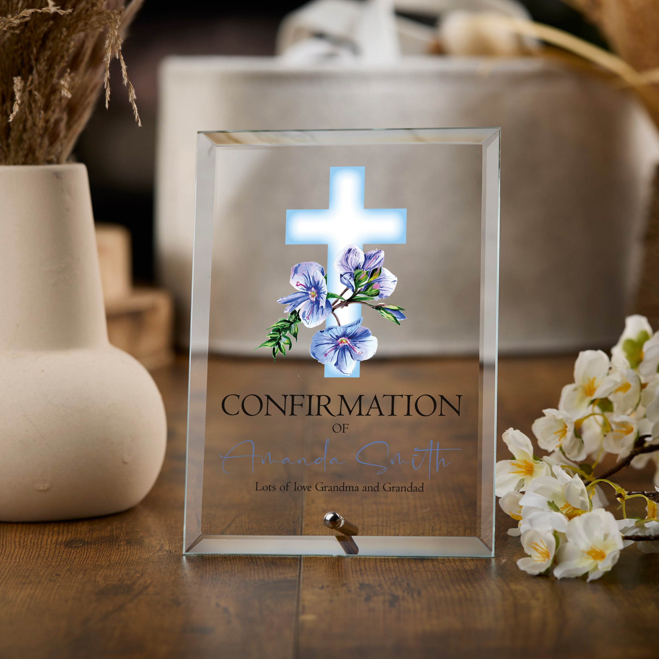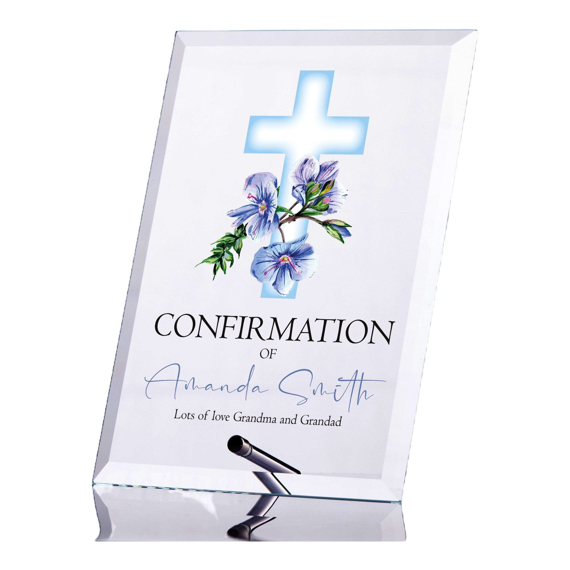 Personalised Confirmation Keepsake Plaque Gift With Blue Cross