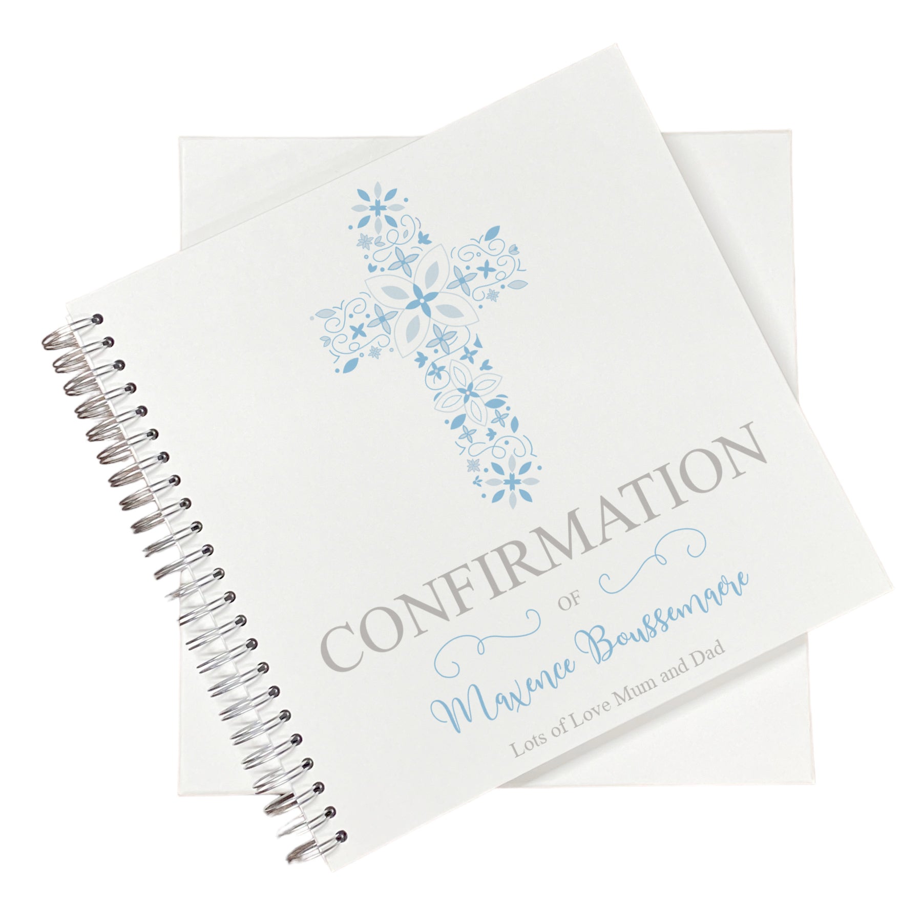 This beautiful blue cross-themed photo album is perfect for storing all your cherished memories from your child's confirmation. With its large size, it can hold plenty of photos and keepsakes, making it an ideal guest book for the special day. Keep your memories safe and organized in this elegant boxed album.