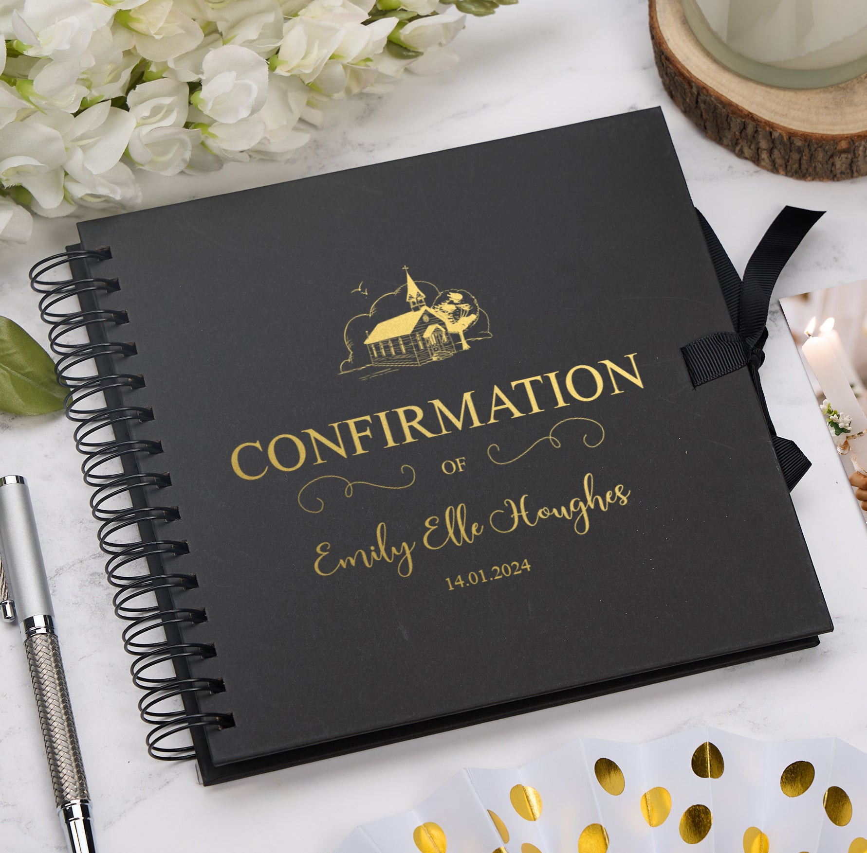 Create a lasting memory of your child's special day with our Personalised Confirmation Day Scrapbook Photo album Guestbook. Capture every moment with our elegant white album that can be personalized with your child's name and date of Confirmation. This is a cherished way to preserve these precious memories for years to come.