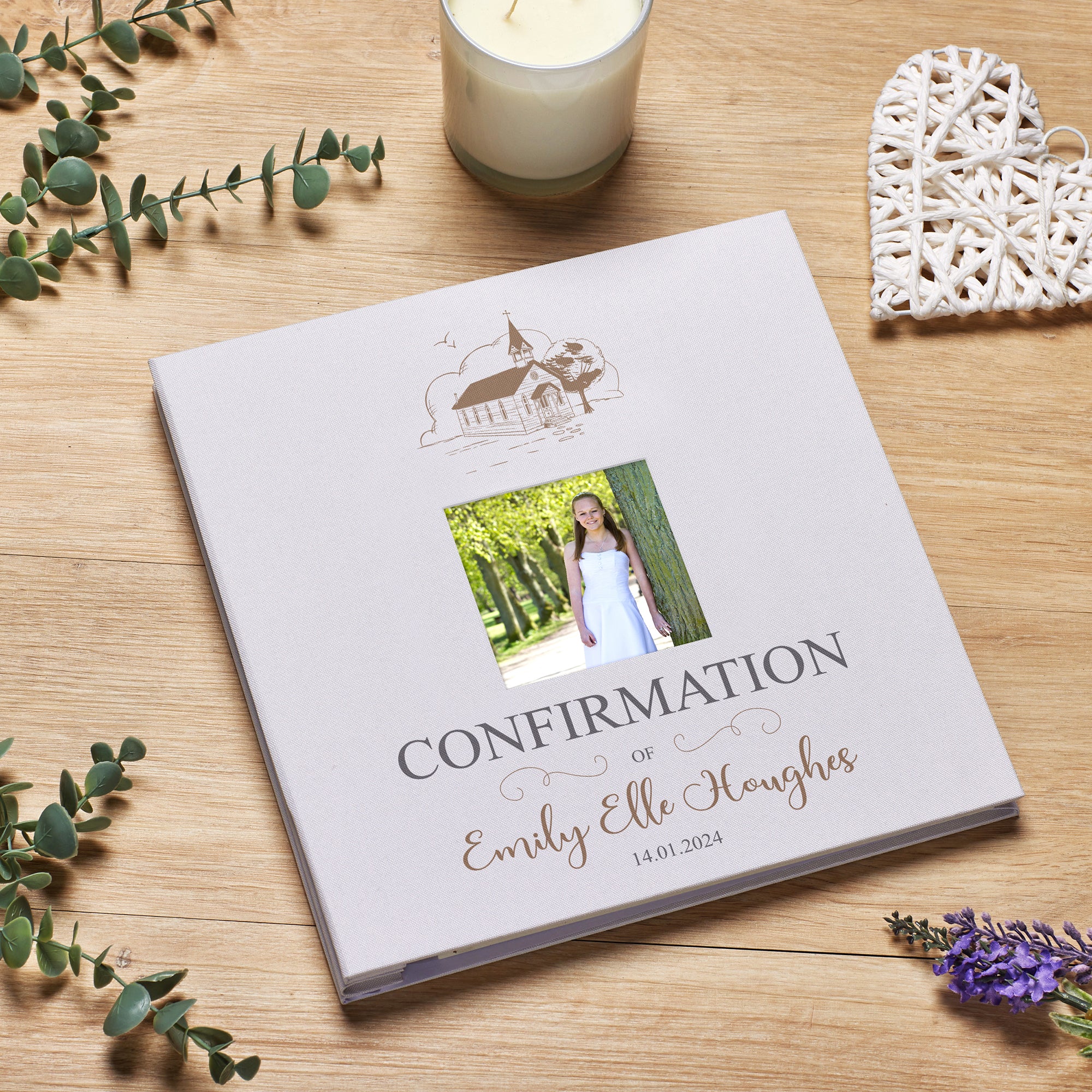 Personalised Confirmation Photo Album Linen Cover With Sketch Church